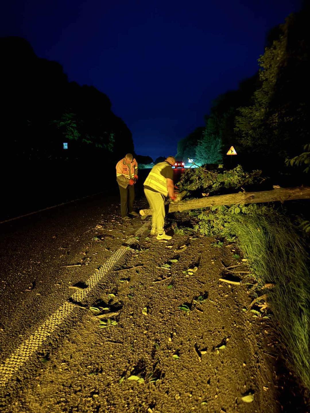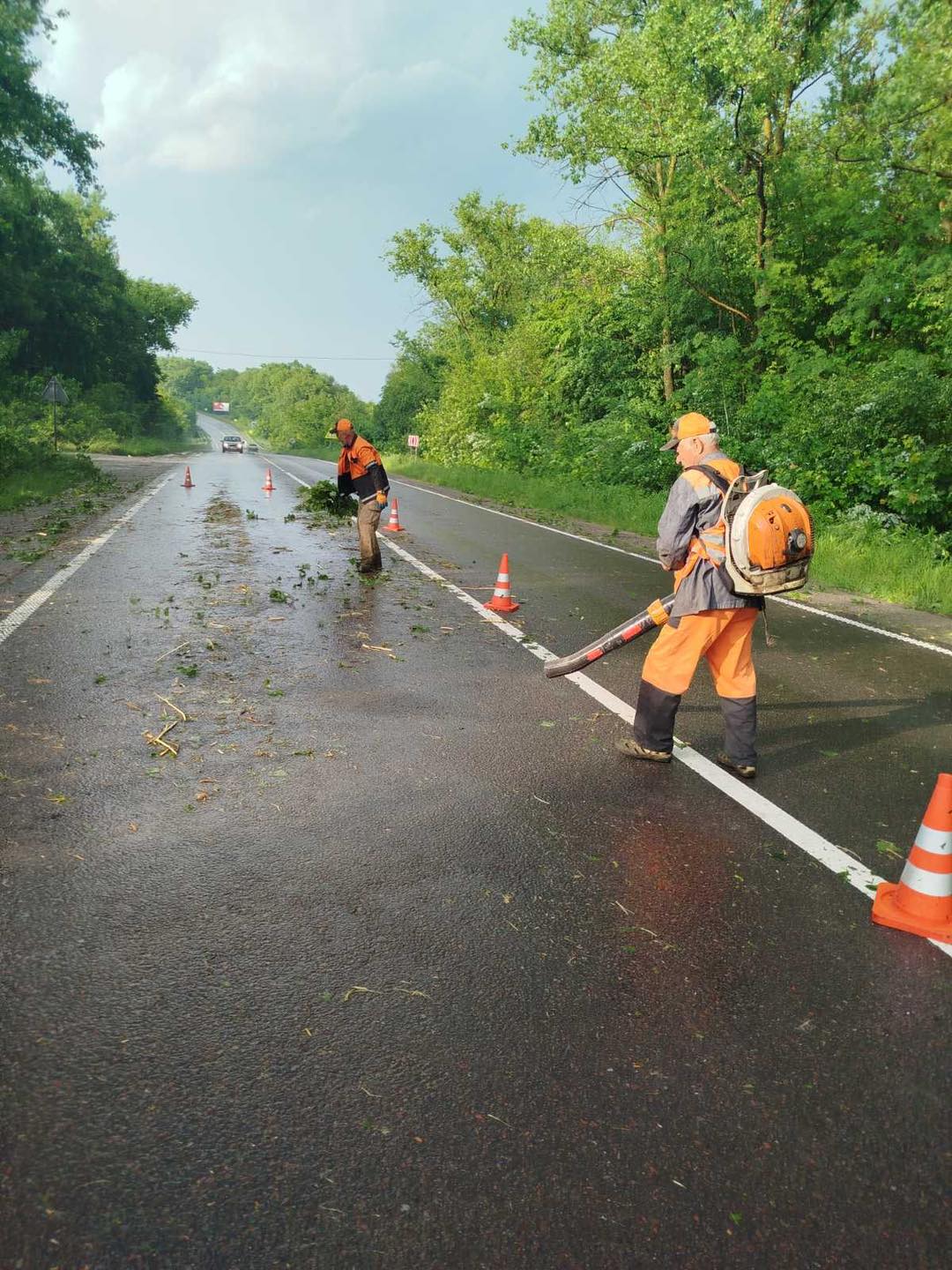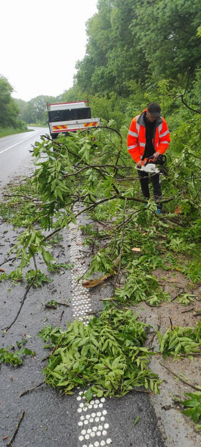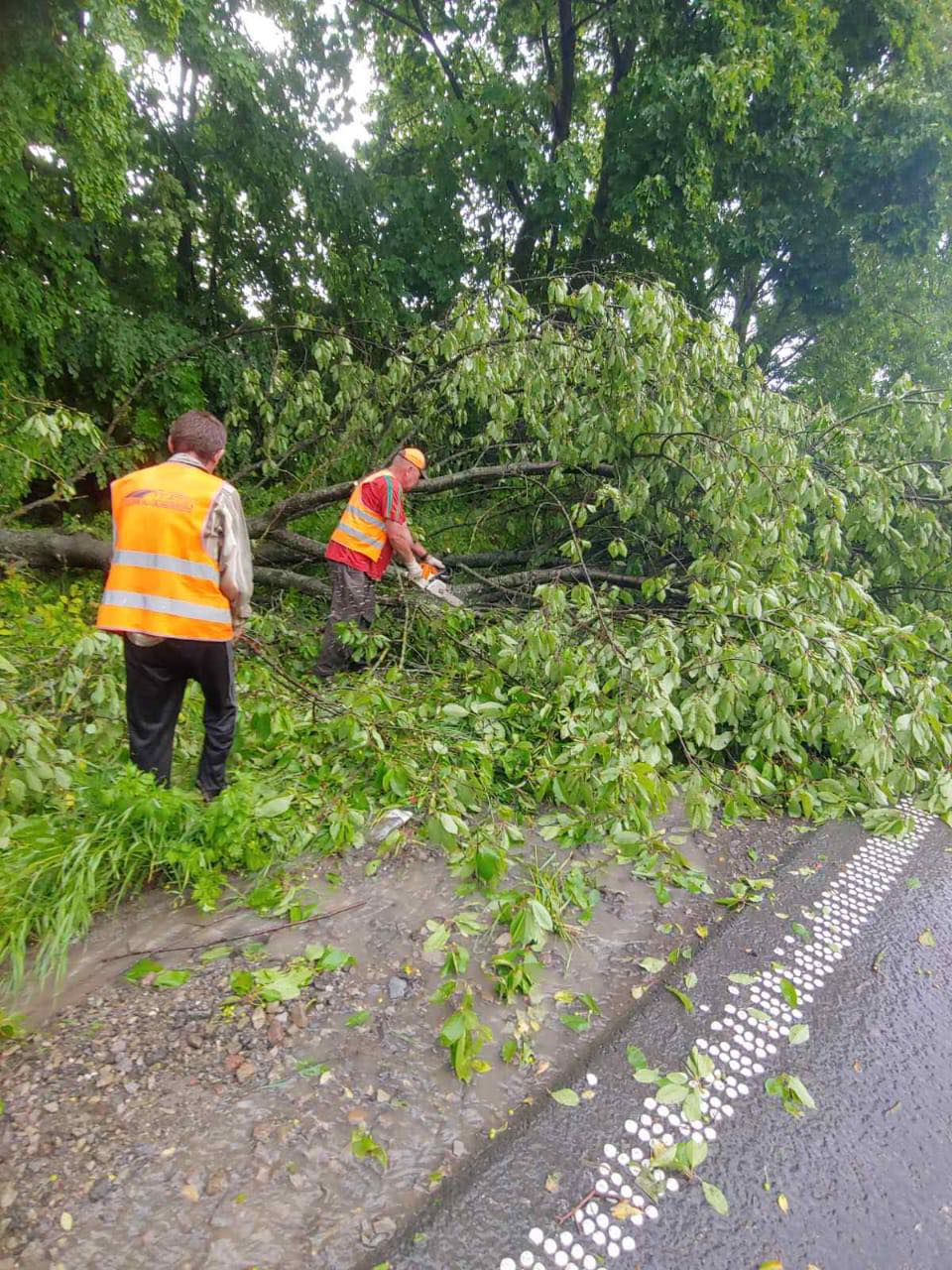 «Очистили ділянки доріг від ґрунту та сміття, яке нанесла вода. Прибрали проїзну частину від повалених вітром дерев», — повідомили в службі.
