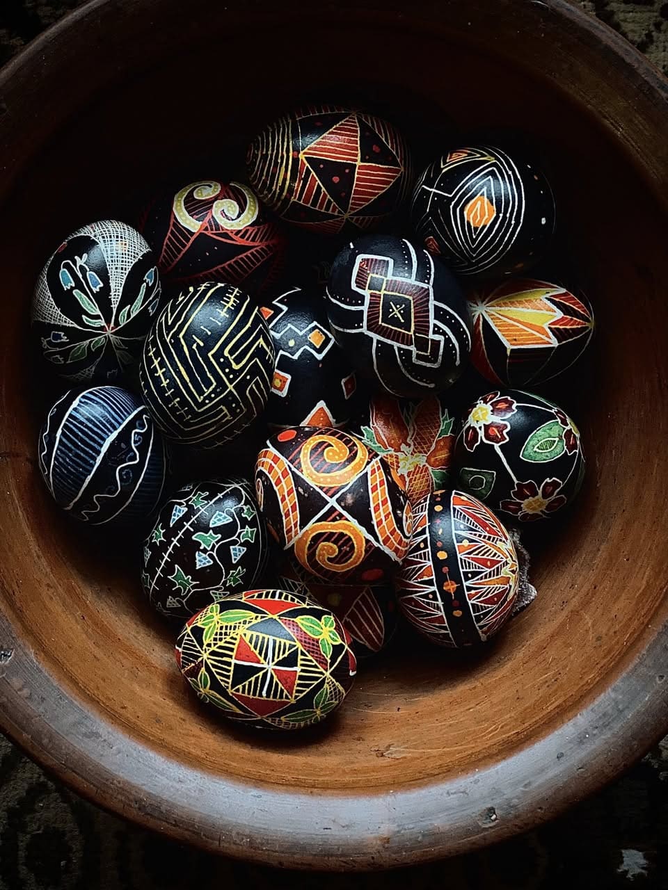 За словами автора, після тривалої роботи й досліджень йому вдалося відновити традиційні писанкові орнаменти, характерні для Борщівщини та Західного Поділля.