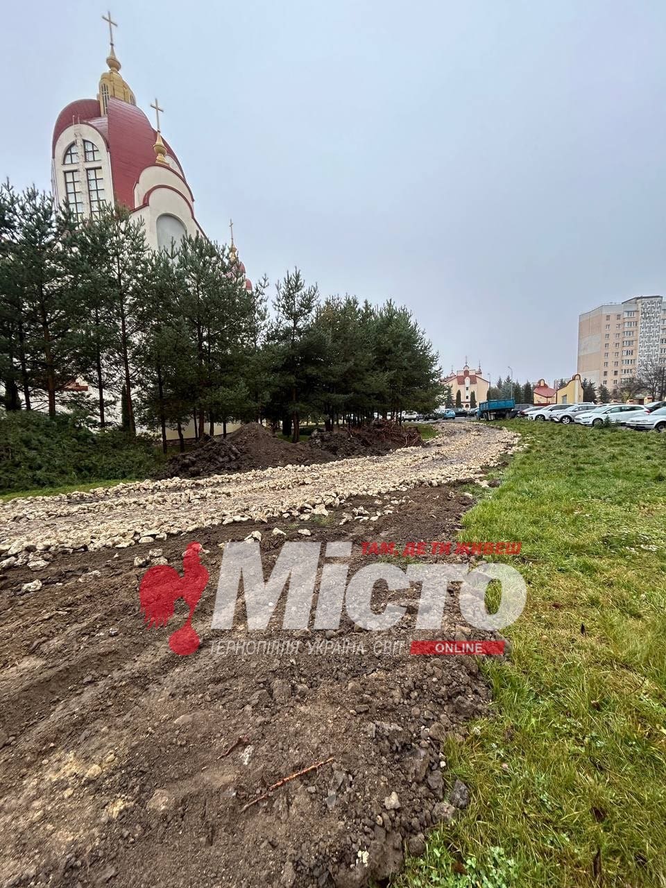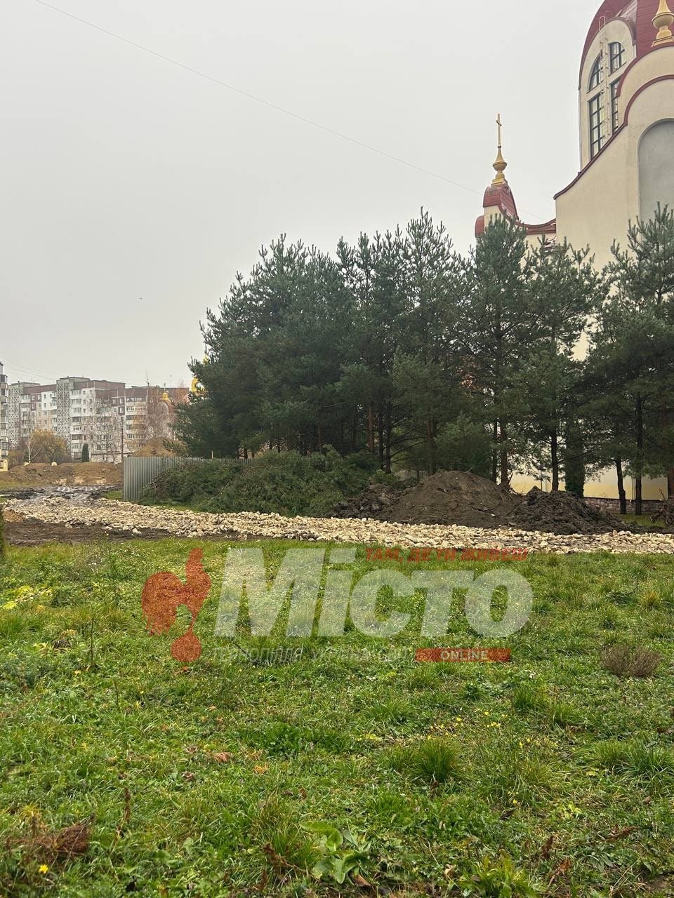 У Тернополі триває будівництво біля храму, що привернуло увагу місцевих мешканців. На подвір’ї церкви Петра зрізали дерева, встановили огорожу та почали підготовку фундаменту. На цій ділянці планують звести каплицю для покійників.
