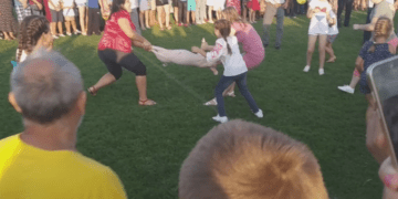 Організатори влаштували на стадіоні у Заборолі конкурс — перегони поросят. Спочатку поросят підштовхували бігти копняками, згодом люди чомусь накинулися на двох поросят і ледве не роздерли їх живцем.