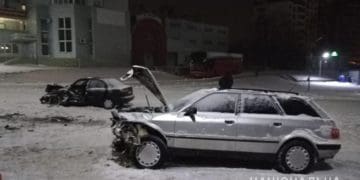 В Тернополі 29 грудня близько 2:57 не розминулися два автомобілі – AUDI-80 виїхав на смугу зустрічного руху.