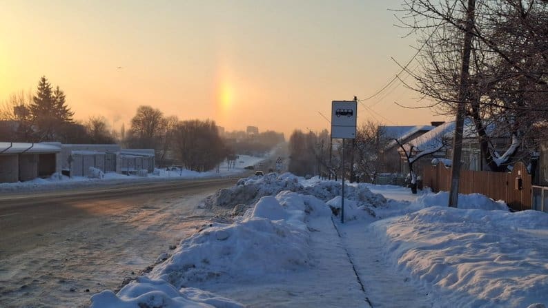 Жителі Тернопільщини 19 січня стали свідками рідкісного природного явища – гало та одного з його різновидів, відомого як “несправжнє сонце”. Незвичне явище спостерігали поблизу Тернополя, зокрема у селі Біла. Фото зафіксували кореспонденти Суспільного та передали на коментар фахівцю.