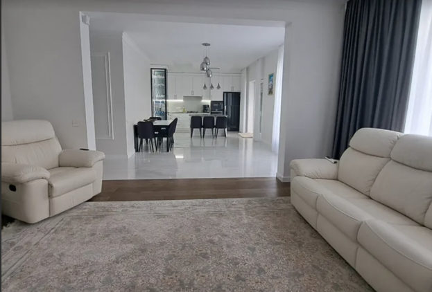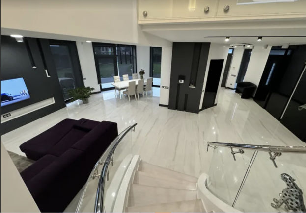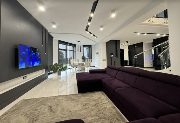 Загальна площа двоповерхового будинку — 279,6 м², на прилеглій території — 5,5 сотих землі. Хоча інтер’єр дещо поступається іншим варіантам з рейтингу, висока вартість зумовлена саме вдалим розташуванням.