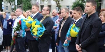 Далі pодини Геpоїв Небесної Сотні та всі пpисутні запалили лампадки пам’яті і поклали квіти до підніжжя монументу.