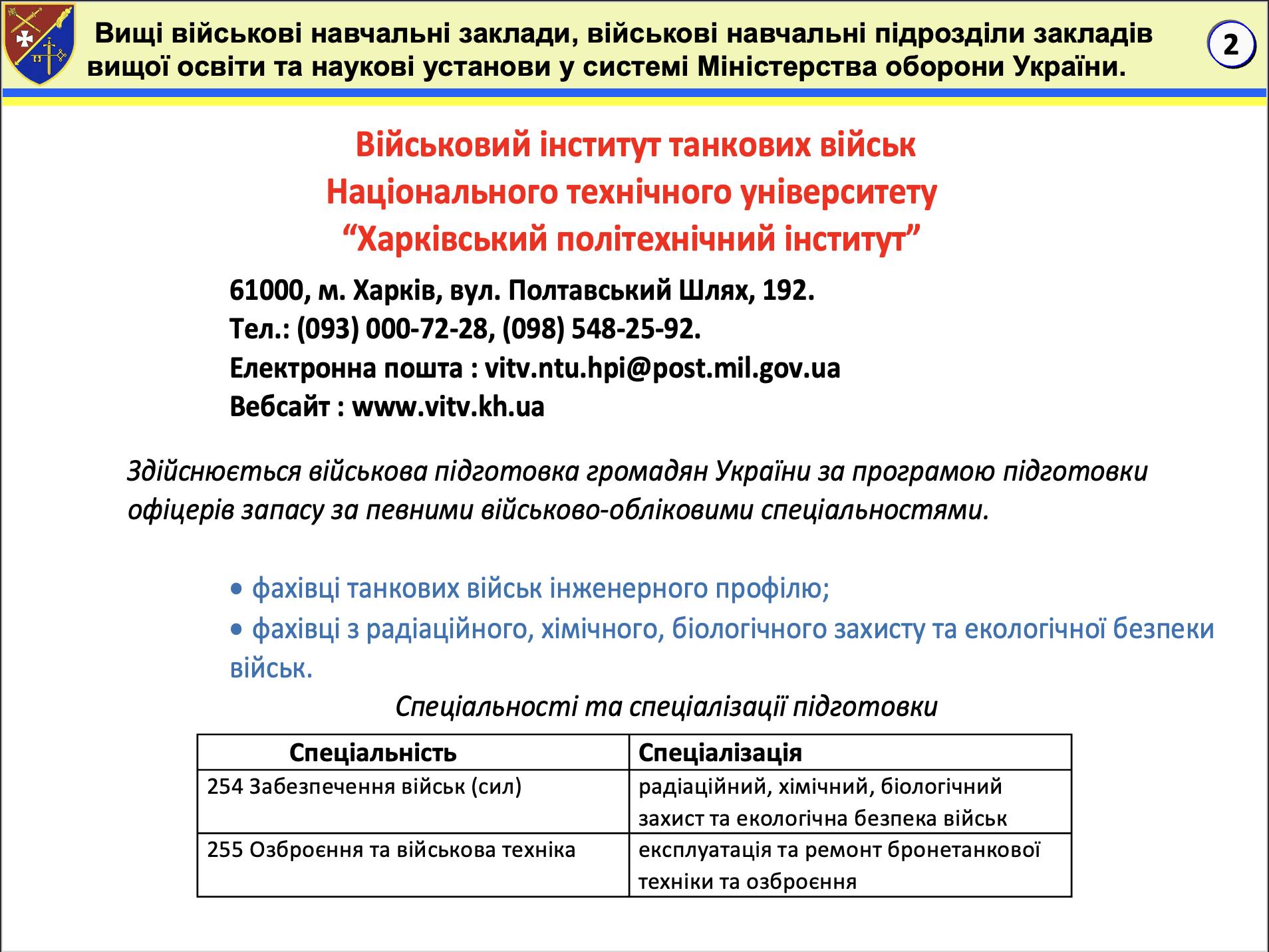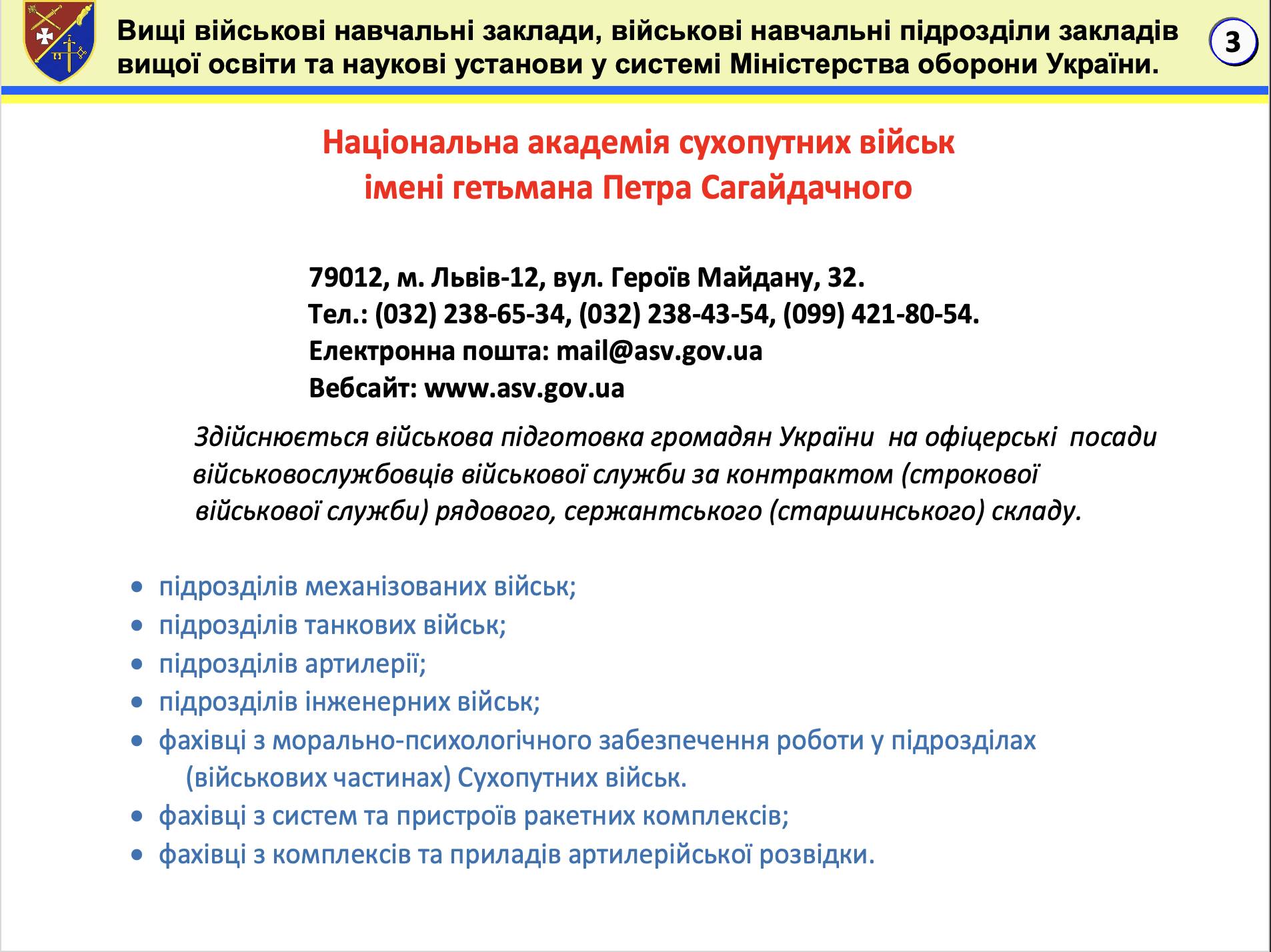 Тернопільський обласний ТЦК СП інформує, які військові виші набирають курсантів та як туди вступити.