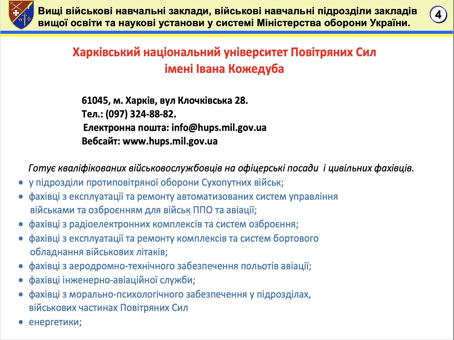 • Перспектива: Можливість кар’єри в Збройних Силах України та лідерства серед кращих.