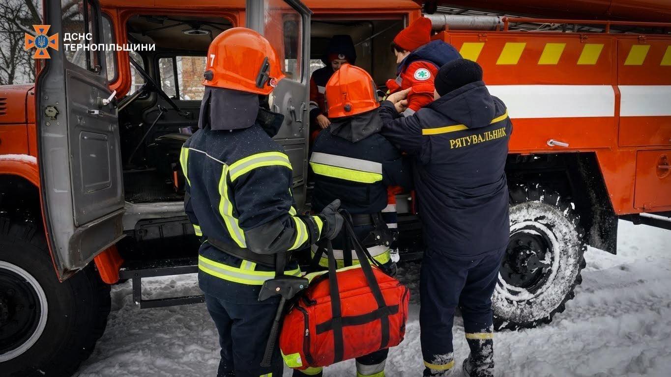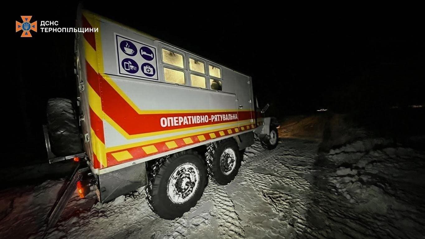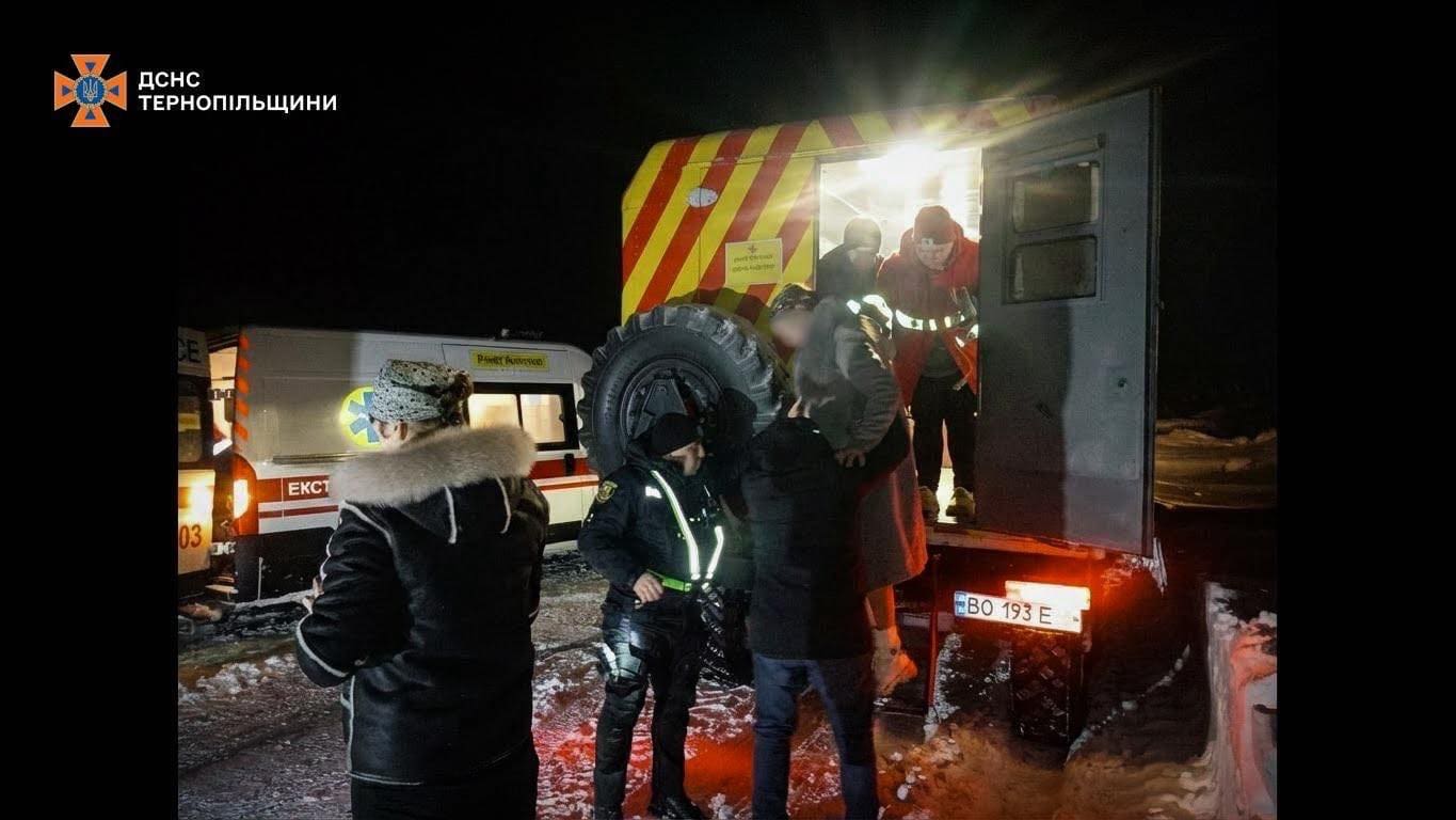 Найскладніша ситуація сталася ввечері, близько 20:30, поблизу села Зубрець Бучацької громади. Легковий автомобіль застряг у сніговому заметі на польовій дорозі. У салоні перебувала жінка, яка потребувала невідкладної медичної допомоги.