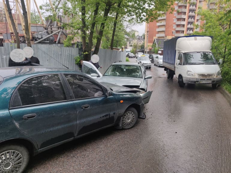 Легкові автомобілі зіткнулися вранці 15 травня, на вулиці Галицька, в Тернополі. Фото з місця ДТП опублікував у Фейсбуці Назарій Хамуляк.