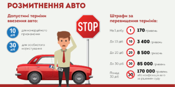Відповідно до нових правил, поліція отримає доступ до інформації митників і зможе зупиняти порушників за кермом «євроблях». Закон передбачає великі штрафи за перевищення термінів транзиту. За один день прострочення з порушника буде стягнуто 170 гривень штрафу, а за 10 днів – вже 3 400 гривень. Зайвий місяць перебування такого авто в Україні коштуватиме порушнику 170 000 грн. Також за перевищення терміну на 30 днів машину можуть конфіскувати за рішенням суду.