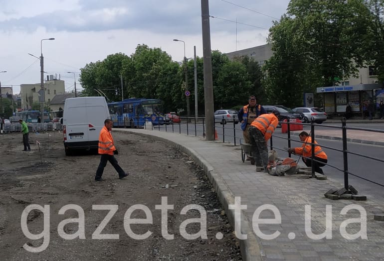 Працівники вже почали вкладати бруківку на пішохідній доріжці, встановили новий світлофор, почали облаштовувати острівці безпеки і власне саму стоянку.