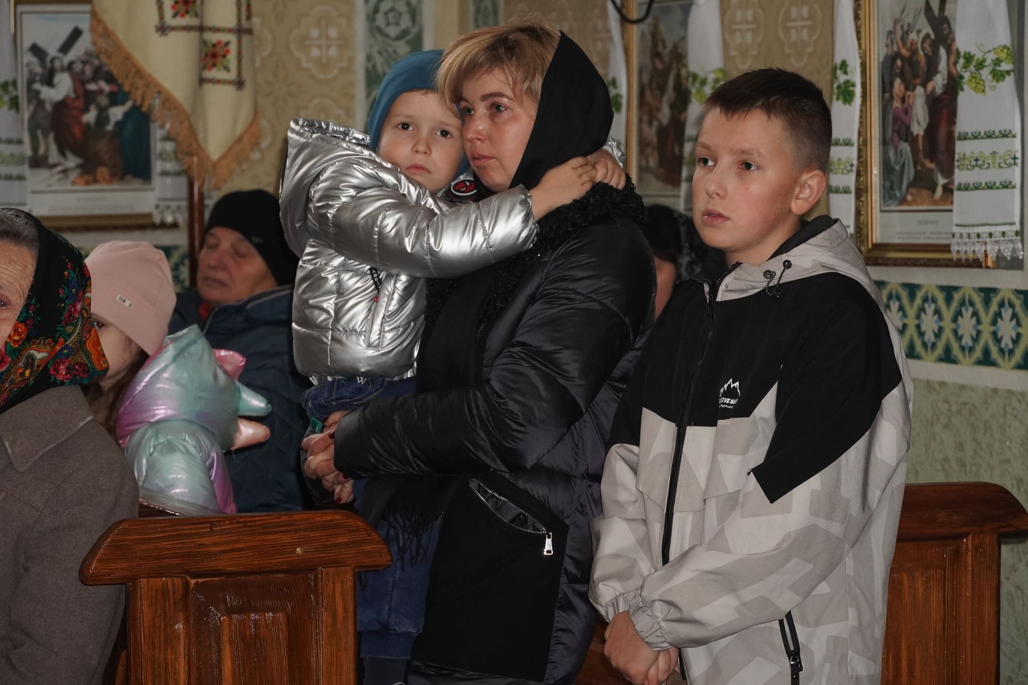 На службі були присутні священники з сусідніх громад, представники місцевої влади та родина загиблого.
