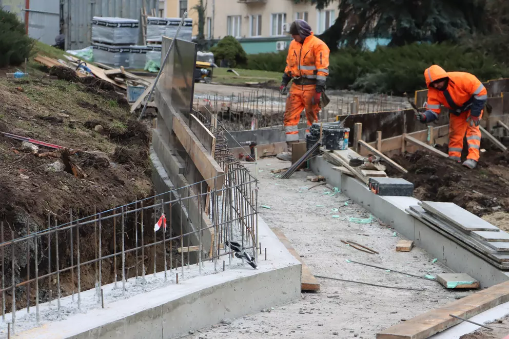 Наразі робітники вже виконали опалубку та підготували основу для пандусу. Він має полегшити доступ до будівлі людям на кріслах колісних, а також батькам із дитячими візками.
