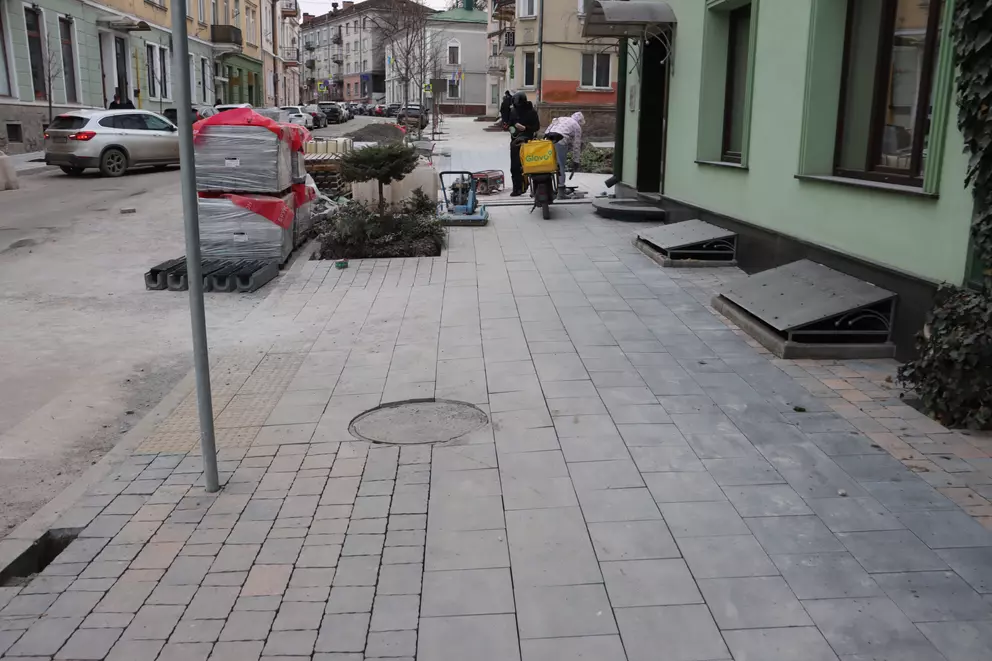 На вулицях Грушевського та Листопадовій оновили тротуарне покриття та замінили бруківку. Під час робіт також встановили нові огорожі вздовж пішохідних зон.