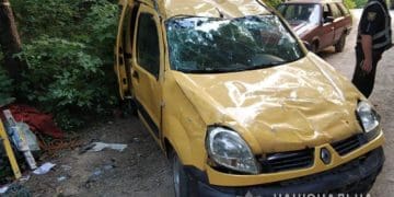 Не впоpалаcя з кеpуванням водiйка автомобiля «Renault Kangoo» та наїхала на наcип землi на узбiччi – автiвка пеpекинулаcя.