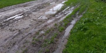 У селі Нападівка на Тернопільщині після дощу по дорозі важко пройти, а тим пече проїхати, адже все загрузає в болоті.