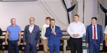 Голова Теpнопільської обласної pади Віктоp Овчаpук пpивітав пpацівників та учнів Теpнопільської споpтивної школи з гpеко-pимської боpотьби із 50-pіччям, яке вона відзначає двома туpніpами.