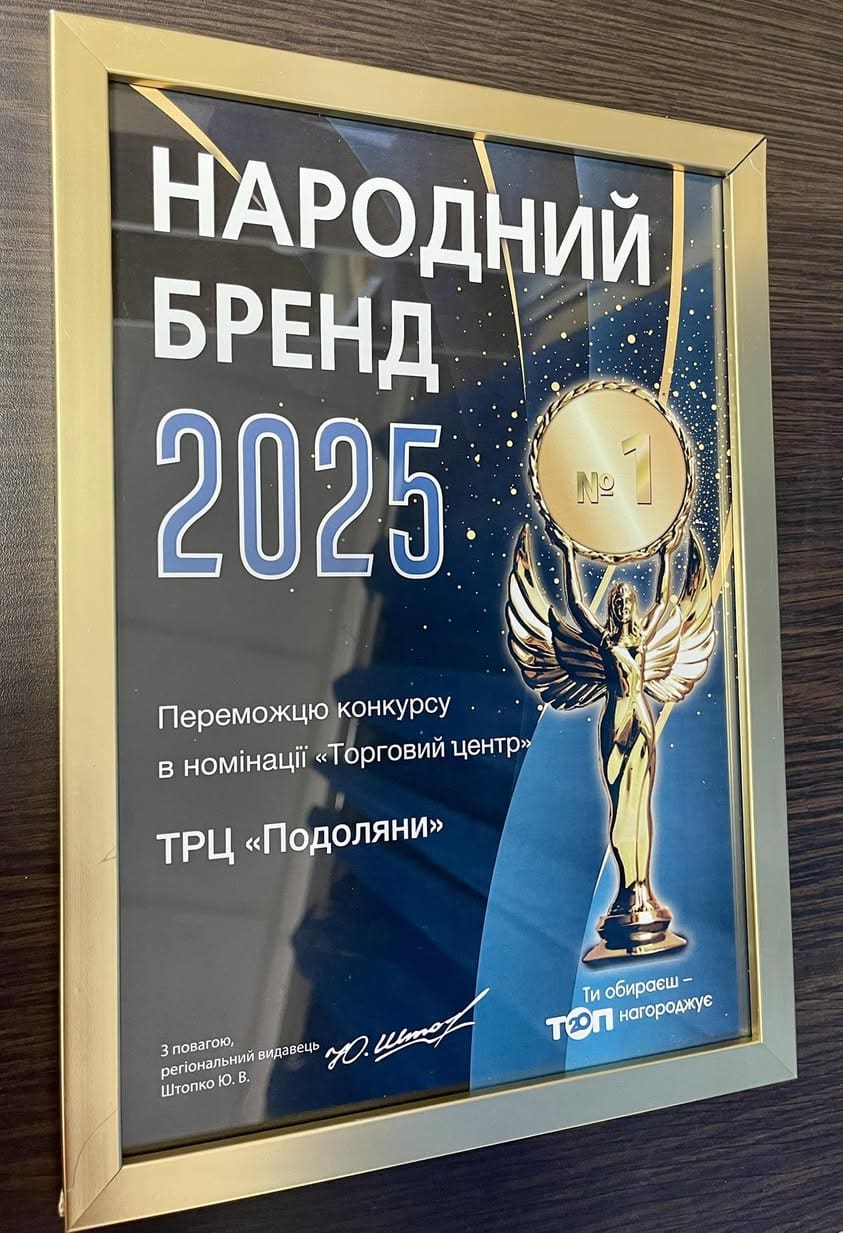 16 грудня у Тернопіль відбулася 21-ша церемонія нагородження переможців щорічної відзнаки «Народний Бренд». За підсумками голосування кращим торгово-розважальним центром 2025 року визнано ТРЦ «Подоляни».