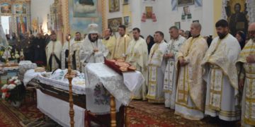 У співслужінні соборного духовенства владика звершив чин похорону священнослужителя – приснопам’ятного протоієрея Олександра Страхарчука. Настоятель храму святителя Миколая Чудотворця с. Великі Дедеркали 12 квітня відійшов у вічність на 41-му році життя. після раптової хвороби.
