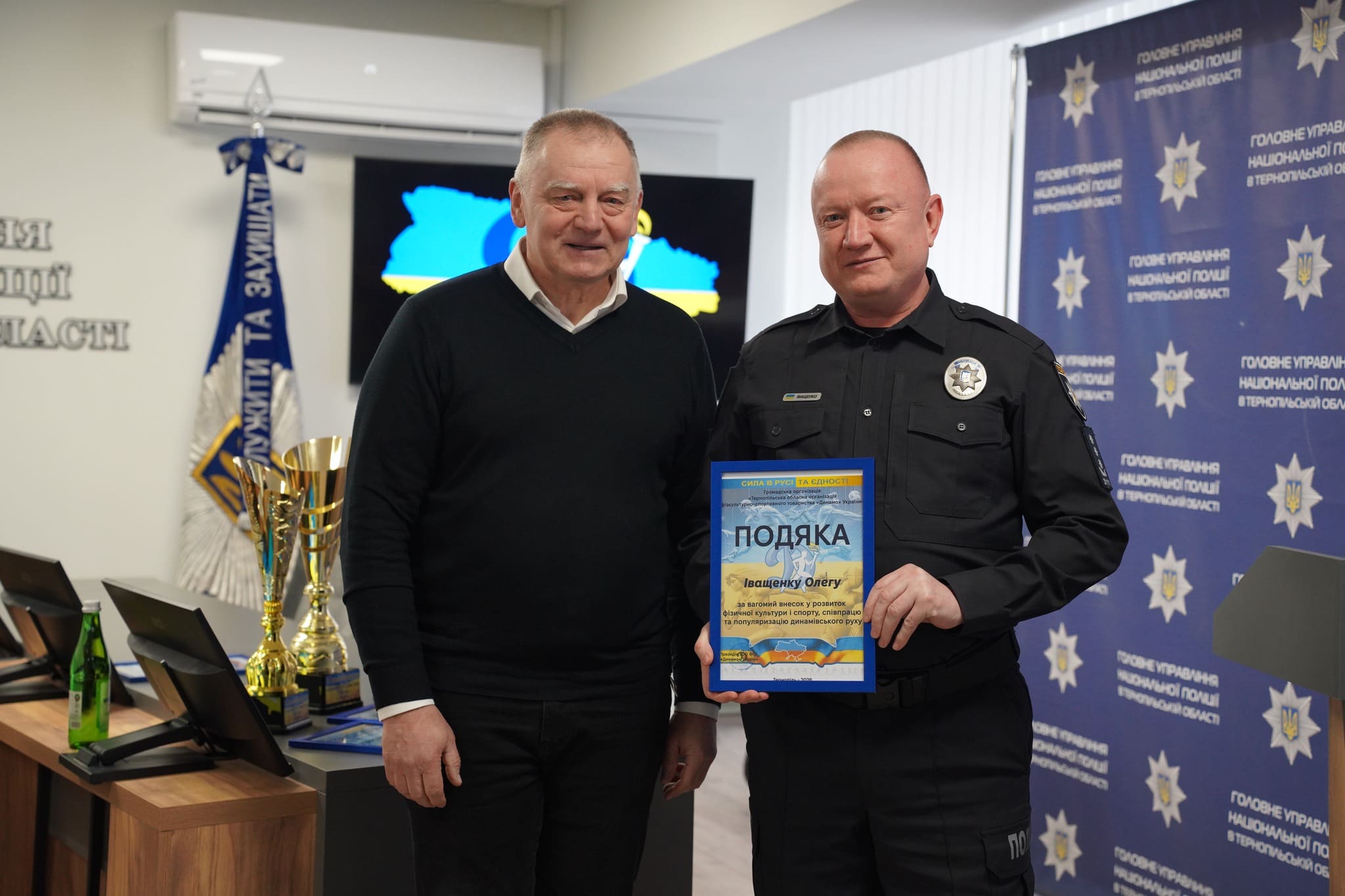 Окрім командного трофея, очільник тернопільської поліції охорони отримав персональну подяку за: