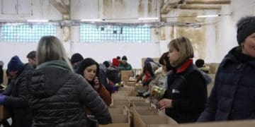 Волонтери складають продуктові набори та відправляють їх захисникам або людям, які постраждали внаслідок активних бойових дій.
