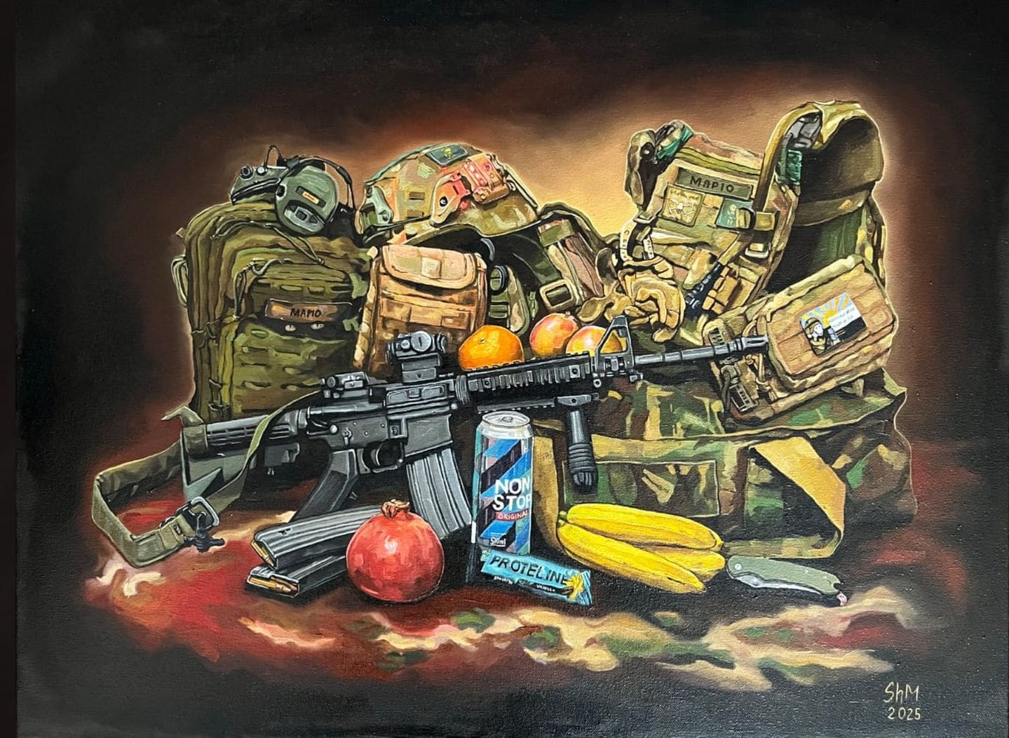 На передовій його руки залишилися такими ж точними та впевненими, як і в студії. Вони утримують зброю — але в короткі паузи між боями тримають пензель.