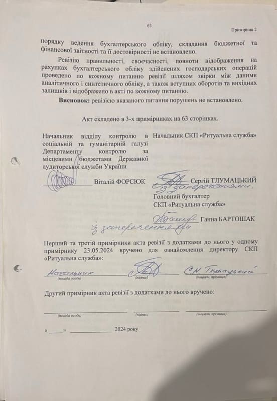 В Акті ревізії від 23.05.2024 №20-24/4 Держаудитслужба констатує, що за результатами завершення ревізії порушення відсутні.