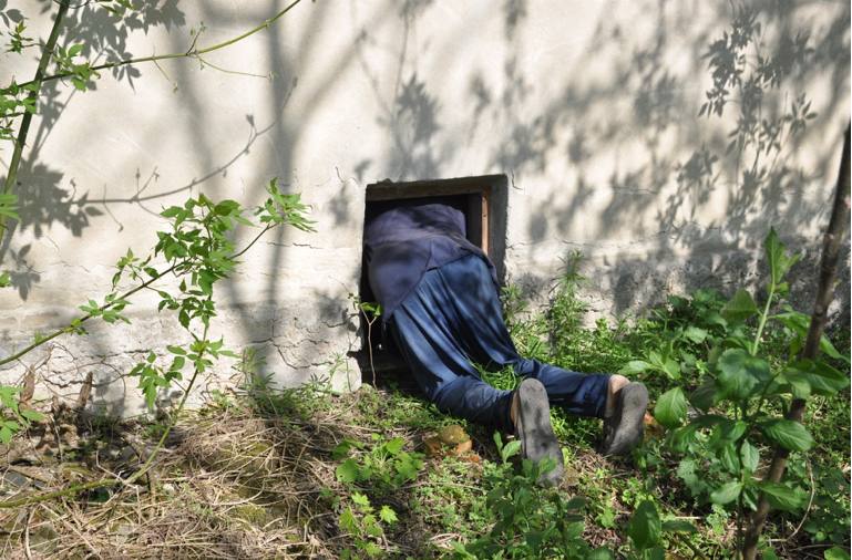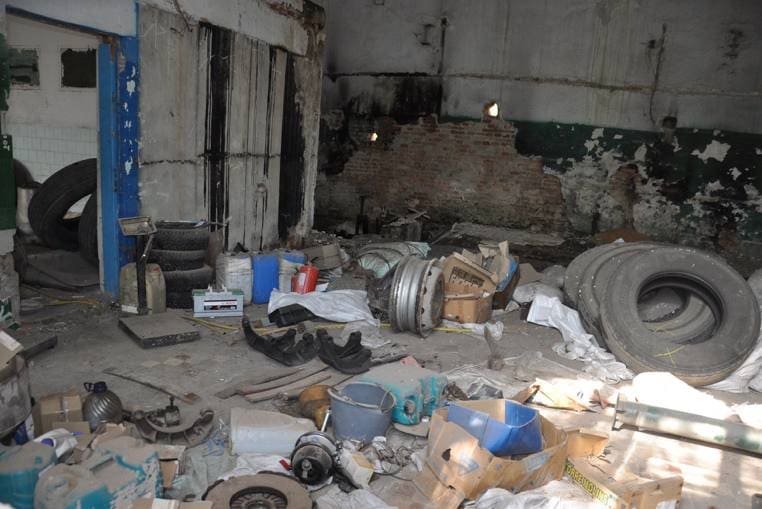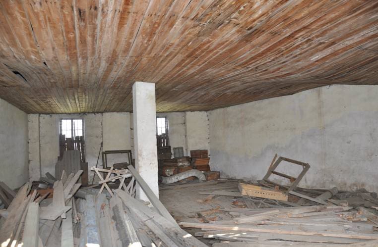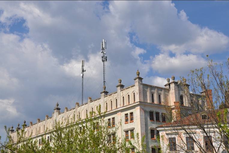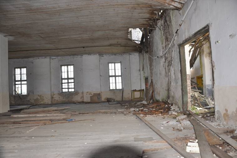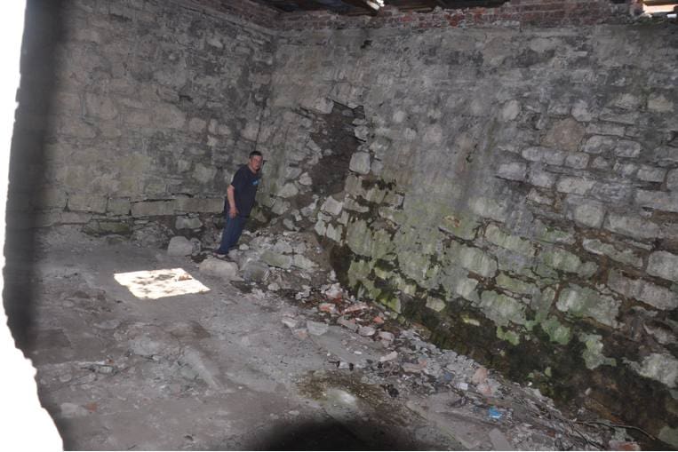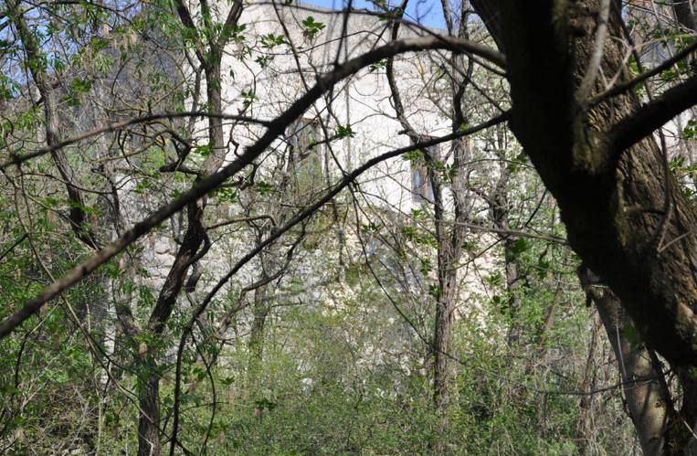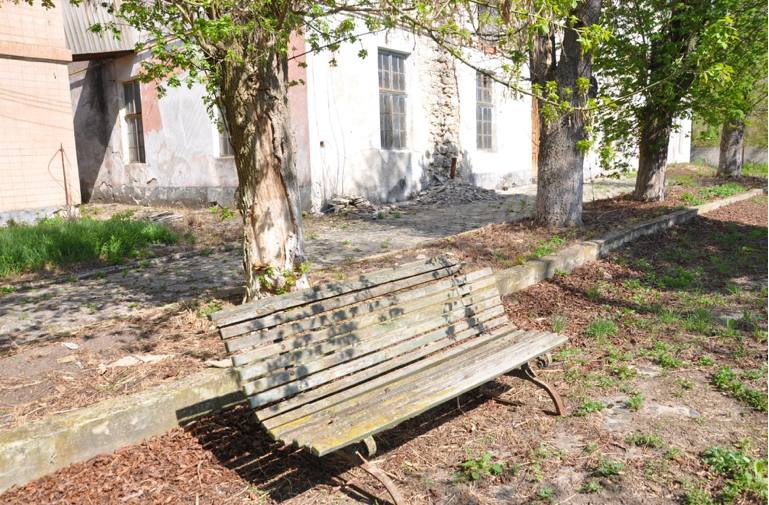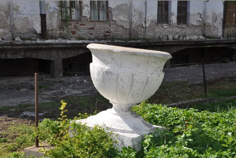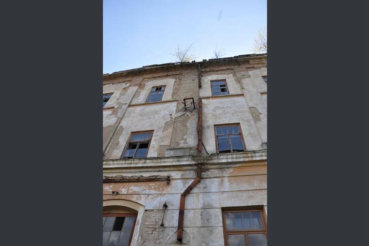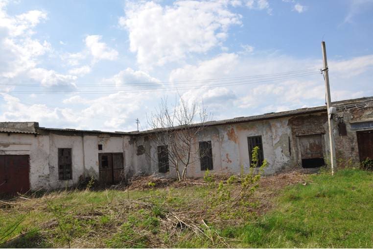З нашим «гiдом» Мирославом Йосиповичем ми потрапили на територiю з тильної сторони через зруйновану огорожу. Густi зарослi рослинностi, занедбанi пiдсобнi примiщення з аркоподiбними вiкнами, з усього видно, збудованi ще за Австрiї, з полишеним всерединi рiзним смiттям.