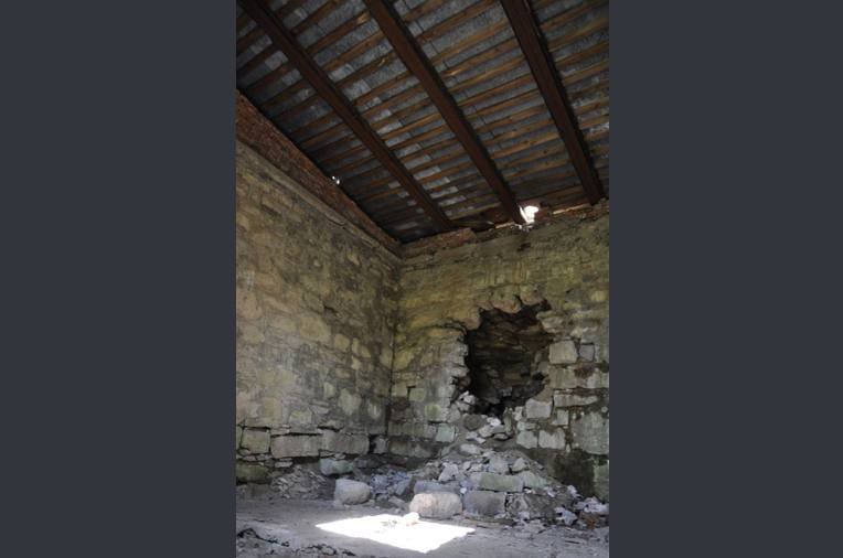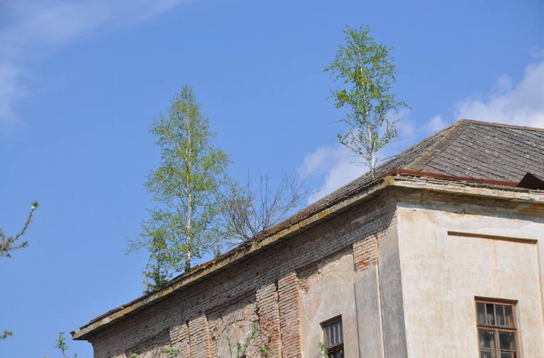 Зазирнули в одне примiщення, друге: вiд постiйного протiкання покрiвлi подекуди нависла стеля чи й уже провалилася; чорна пустка замiсть вiкон i дверей; вiд затiкання дощiв на зовнiшнiх стiнах обсипалася штукатурка i лущиться цегла; на дахах багатьох будiвель повиростали вище людського зросту берези тощо. Натрапили й на слiди якихось розкопок – мабуть, i тут шукали «золото Полуботка» (чи то Лянцкоронських?).