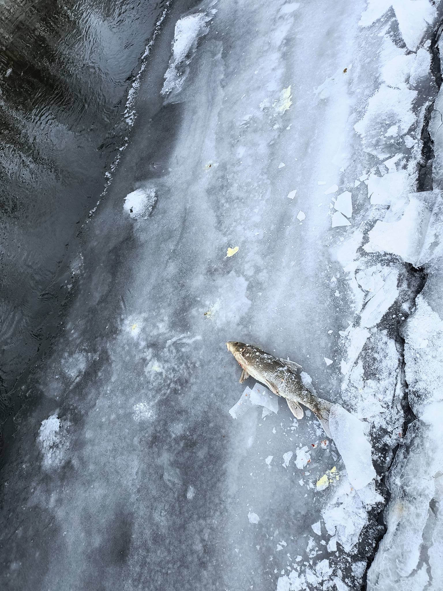 На кризі Стрипи зафіксували покинуту рибу. Це наслідок активного полювання бакланів. Люди зазначають: птахи не лише поїдають здобич, а й часто калічать рибу дзьобами. Після цього вона гине від ран або інфекцій і залишається на поверхні льоду.