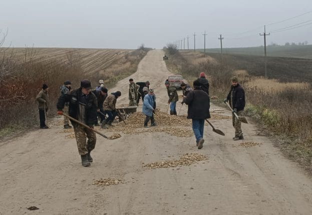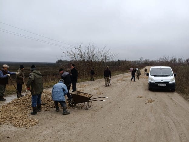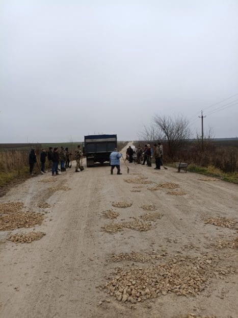 «Аграрій, точніше сказати господар, виділяє щебінь, навантажувач, машину, священник з небайдужими людьми (дехто умисне їхав до рідного села аби помогти!) організовують усіх, хто може тримати лопату».