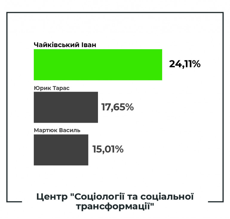 Так, згідно опитувань, кандидат-самовисуванець Іван Чайківський з відривом у майже 2 рази випереджає найближчого конкурента.