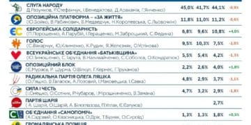 *Дані рейтингу партій базуються на результатах соціологічного опитування, проведеного міжнародною компанією Edison Research разом з Київським міжнародним інститутом соціології на замовлення газети «Сегодня».