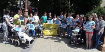 Мами, які є членами громадської організації «Спілка батьків дітей, які хворіють дитячим церебральним паралічем «Крила ангела» у понеділок зібралися на Театральному майдані на акцію підтримки своєї колеги Лариси Римар, яка балотується до Верховної Ради України по виборчому округу №163 з центром у Тернополі від політичної партії «Громадянська позиція».