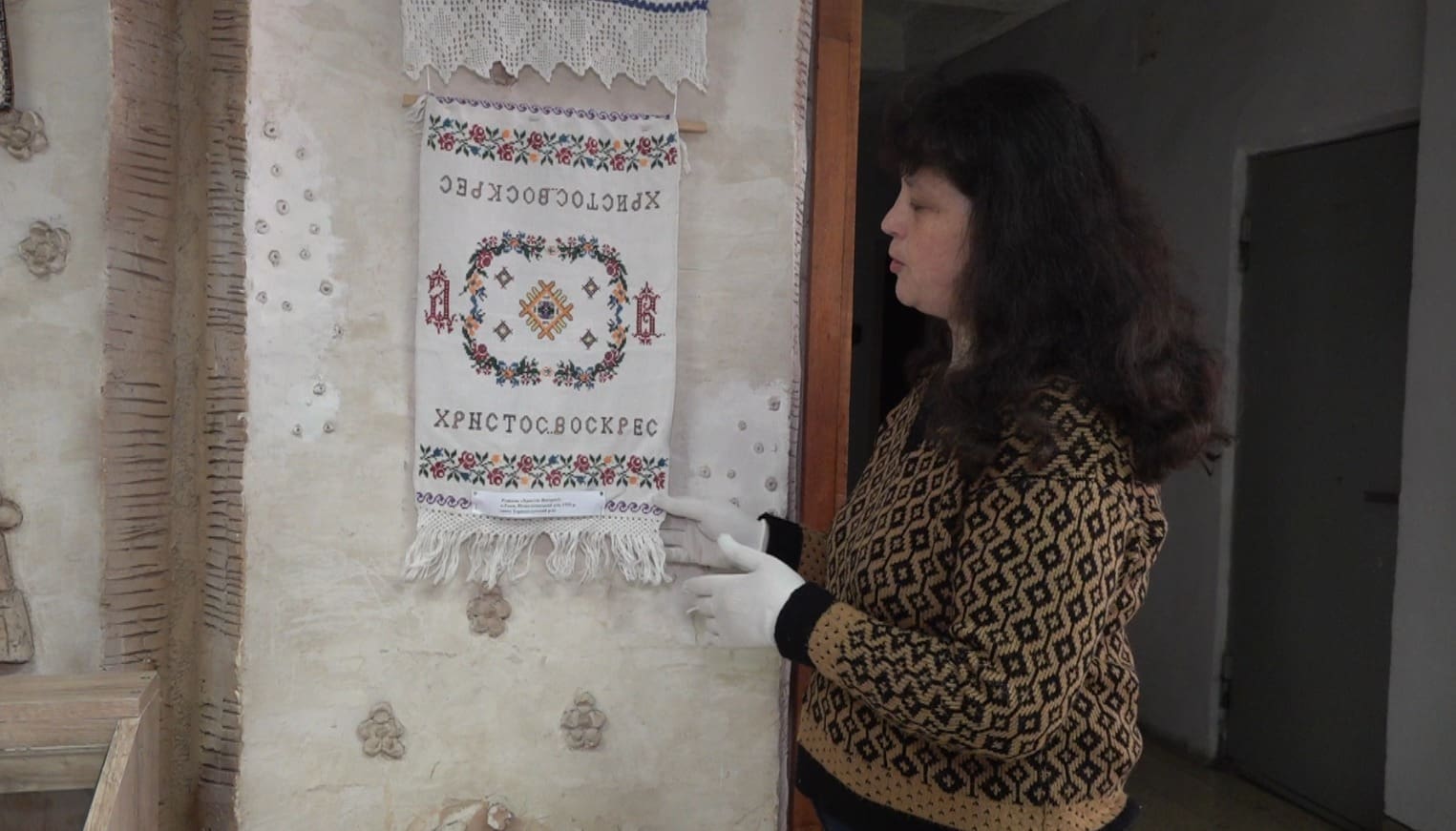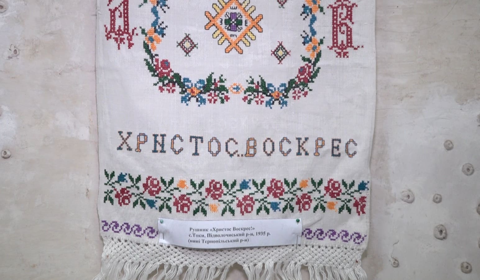Село Токи (Підволочиська громада): Рушник 1935 року з багатим орнаментальним наповненням та релігійною символікою.