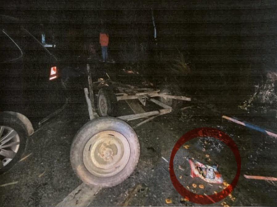 Суд першої інстанції вказав, що «на дошці підводи нібито був овальний помаранчевий світловідбивач». Проте, як зазначає адвокат, «на реальних фототаблицях – жодного катафоту немає. Є лише уламки дерева, дошки, пачка снеків – і жодного світловідбивача, який би врятував життя чи змінив хід подій».