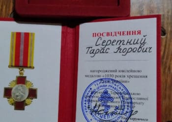 Медаль «1030 років хрещення Руси-України» кандидату у народні депутати від Тернополя Тарасу Серетному днями вручив настоятель храму святих благовірних князів ...