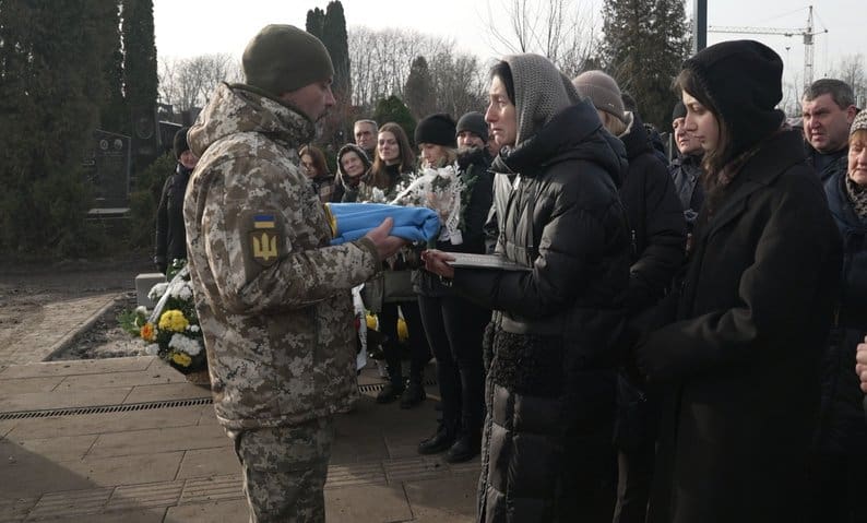 На прощанні зібралися рідні, побратими, друзі та знайомі. Зі Львова приїхала письменниця Катерина Міхаліцина – подруга загиблого.