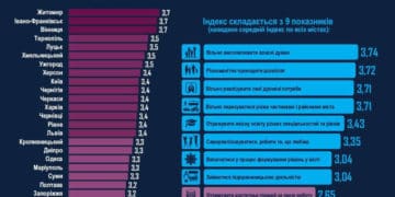 Індекс задоволеності можливостями міста складається з дев’яти показників, які оцінювалися за шкалою від 1 до 5 балів – від “жахливо” до “відмінно”.