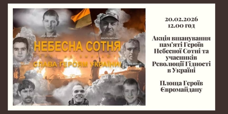 Сьогодні, 20 лютого, Україна згадує події, що назавжди змінили хід нашої історії. У Тернополі на площі Героїв Євромайдану відбудеться меморіальний захід, присвячений річниці Революції Гідності та пам’яті перших героїв сучасної боротьби за незалежність. Початок акції заплановано на 12:00. ПЕРЕГЛЯНЬТЕ ТАКОЖ Небесна Сотня тримає небо: Тернопіль вшанував 12-ту річницю подвигу Героїв 20.02.2026 Онлайн-трансляція п’ятдесят п’ятої сесії … Читати далі Тернопіль вшановує подвиг Героїв Небесної Сотні