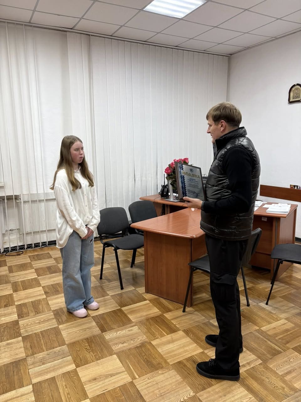 Керівник райуправління поліції відзначив Софію Сидорко за чесність і небайдужість, підкресливши її зразкову громадянську позицію.