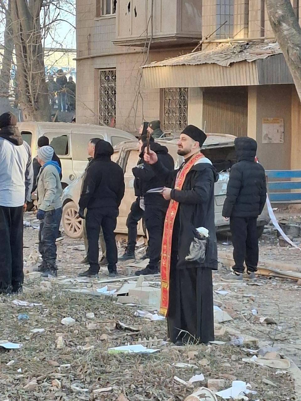 Він на місці події молився, хрестив залишки будинку, підходив до людей, втішав постраждалих.