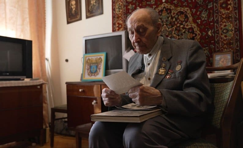 Петро Кудла показує фото. Фото: Суспільне Тернопіль