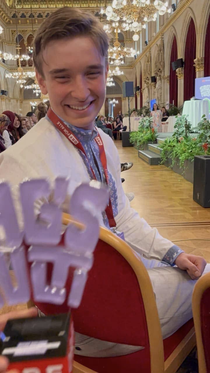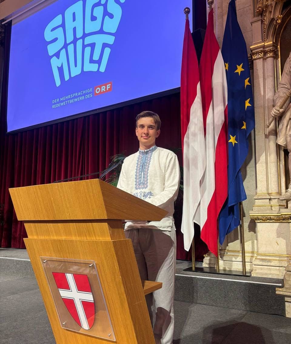 Святослав Колодій — хлопець із Тернополя, який став фіналістом престижного мовного конкурсу в Австрії. За три роки він не лише опанував німецьку мову на високому рівні, а й написав поетичний твір, що вразив журі своєю глибиною та відвертістю. Конкурс проходив під егідою центрального австрійського телебачення ORF, а нагородження відбулося в урочистій атмосфері у знаменитій залі Ратуші у Відні. Про це повідомила мати (засновниця етномайстерні “Коза Дереза” (Koza Dereza Manufacture) Вікторія Колодій.