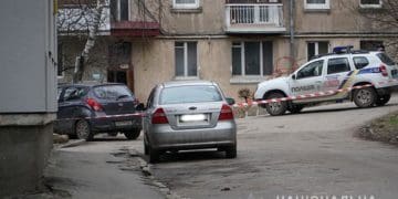 На місце події виїхала слідчо-оперативна група та вибухотехнічий підрозділ. Правоохоронці обмежили доступ до автівки й обстежили територію. Під переднім колесом транспортного засобу вони виявили паперову коробку акуратно замотану в чорний поліетиленовий пакет.