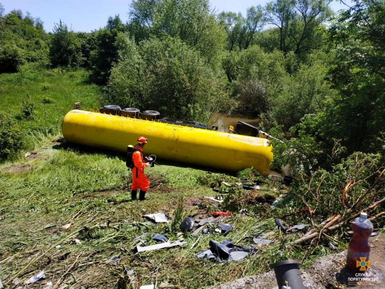 Вдосвіта 27 травня на автодорозі Т-20-02 «Тернопіль – Скалат – Жванець», біля с. Ланівці Борщівського району, водій напівпричепу DAF, що перевозив цистерну зі скрапленим газом – пропан-бутан не впорався з керуванням, з’їхав з проїжджої частини дороги і автомобіль перевернувся.