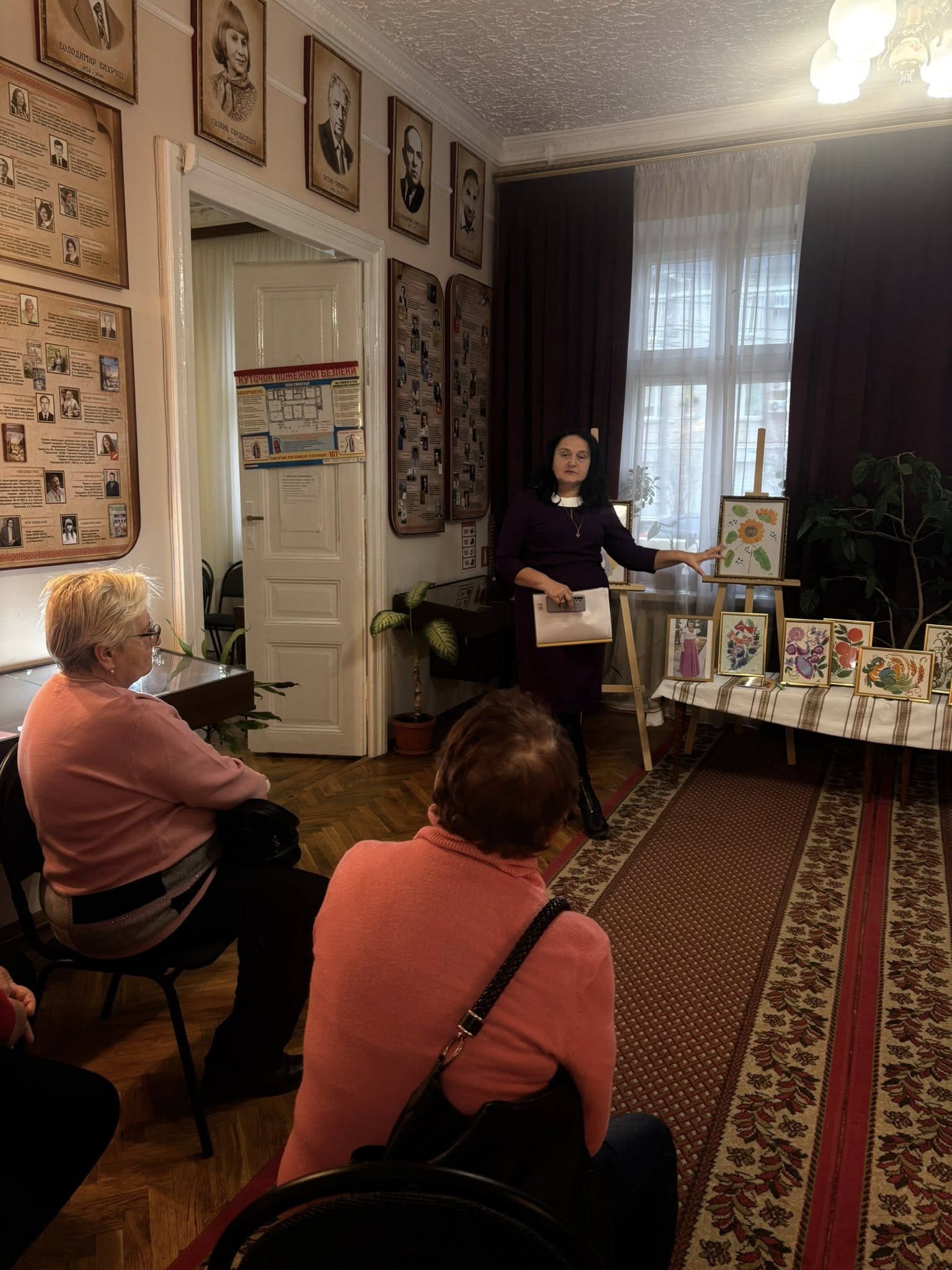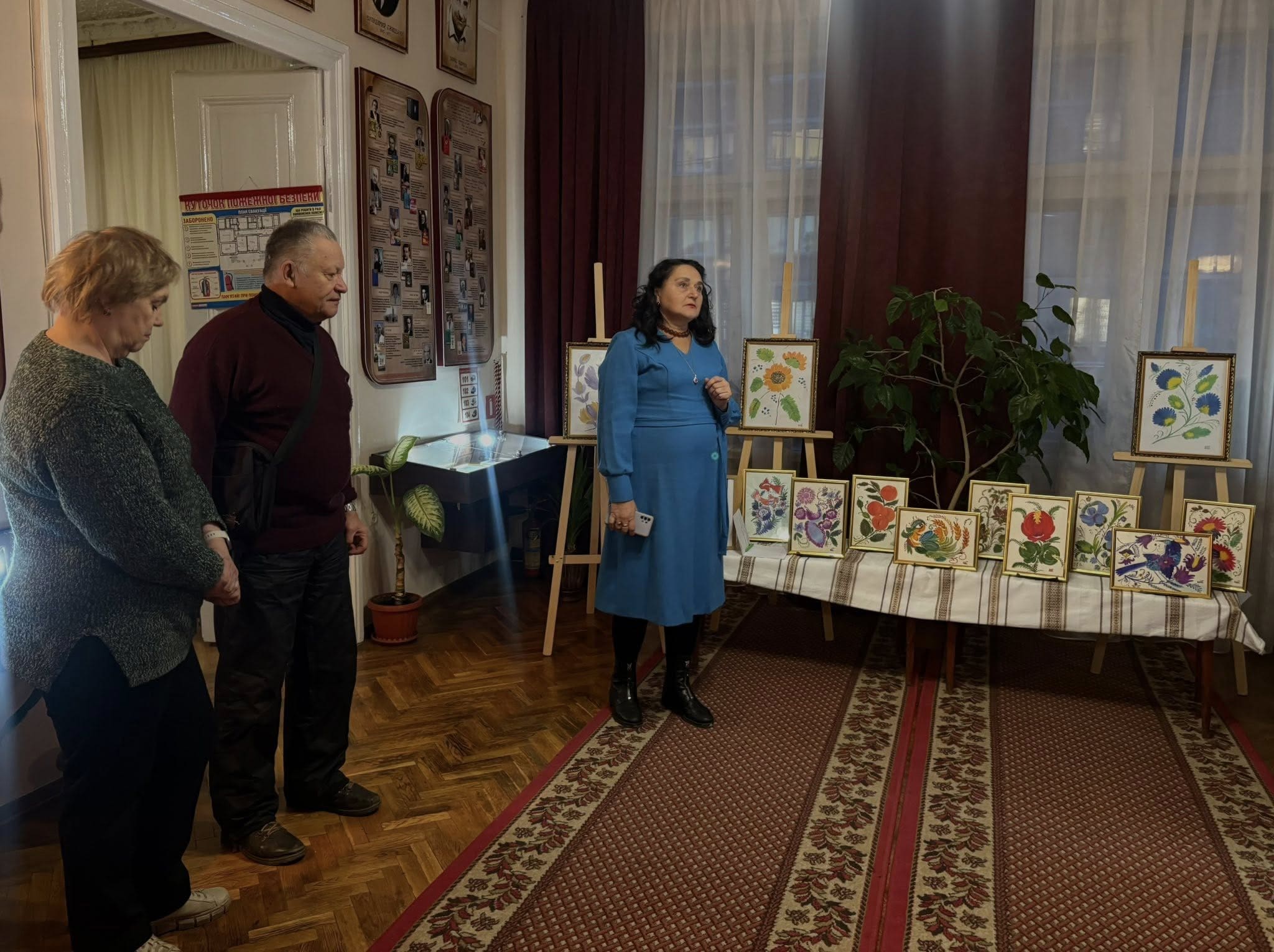2 грудня бібліотеку-музей відвідали гості, які мали змогу оглянути експозицію та поспілкуватися безпосередньо з авторкою робіт. Під час зустрічі Олена Стручок розповіла про історію створення своїх картин, особливості техніки петриківського розпису та власні творчі підходи.