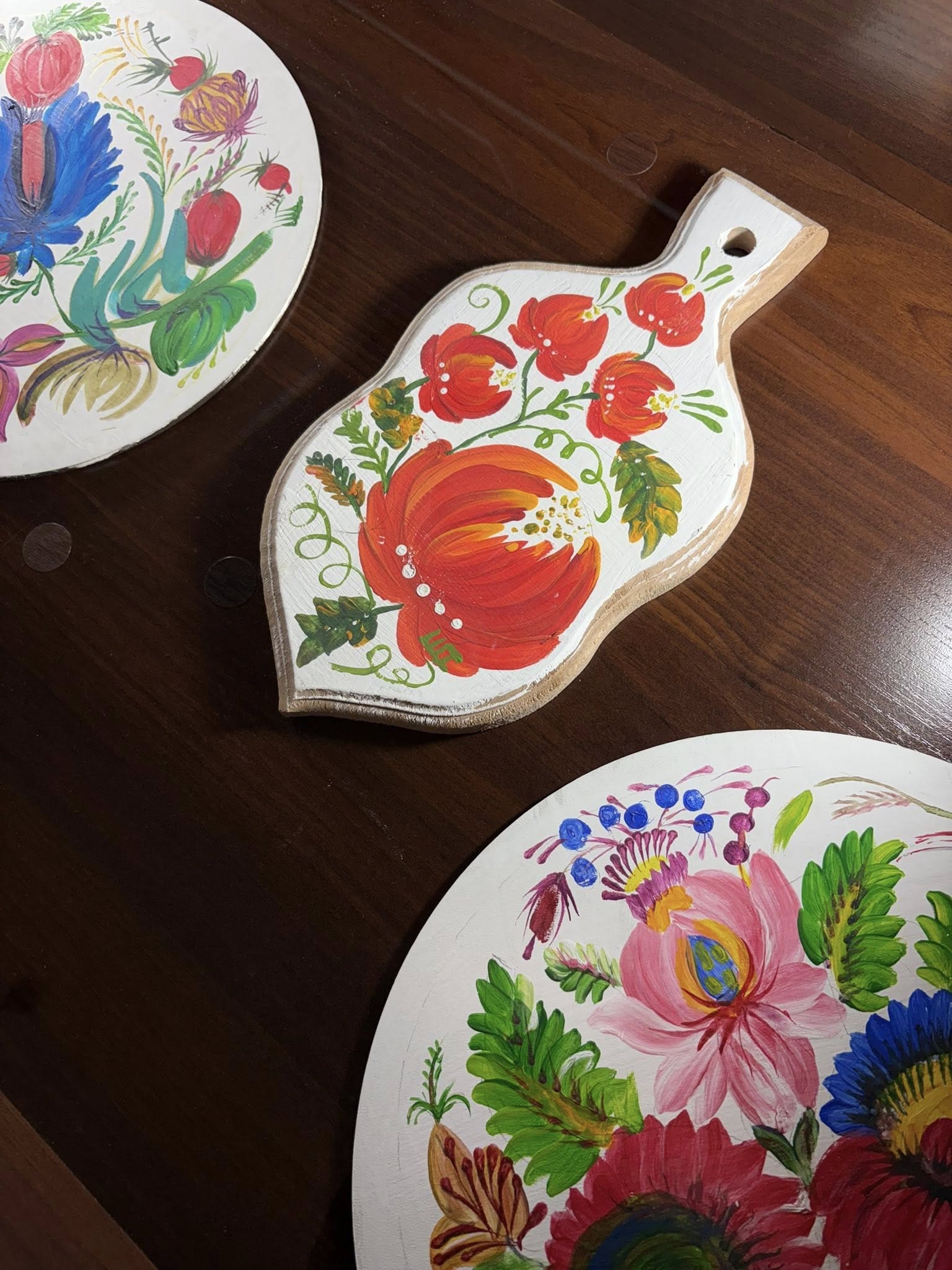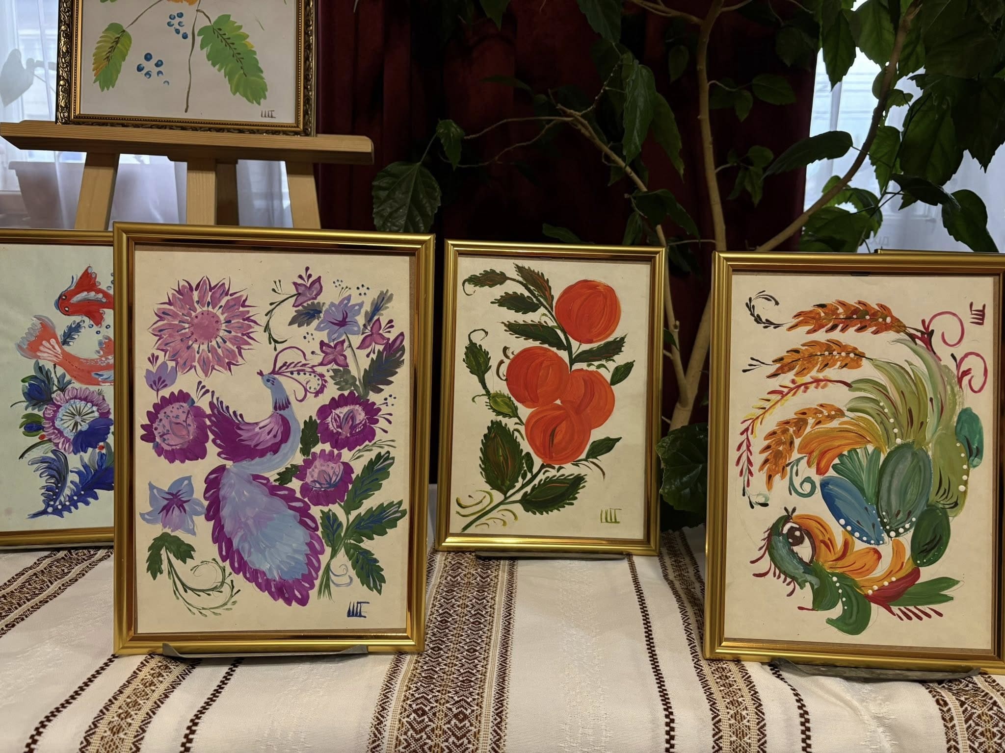 У представленій колекції квіти, птахи та калинові грона формують цілісні композиції, сповнені символіки й колористичної гармонії. Петриківський розпис у цих роботах постає не лише як декоративне мистецтво, а як спосіб збереження культурної пам’яті та національної традиції.