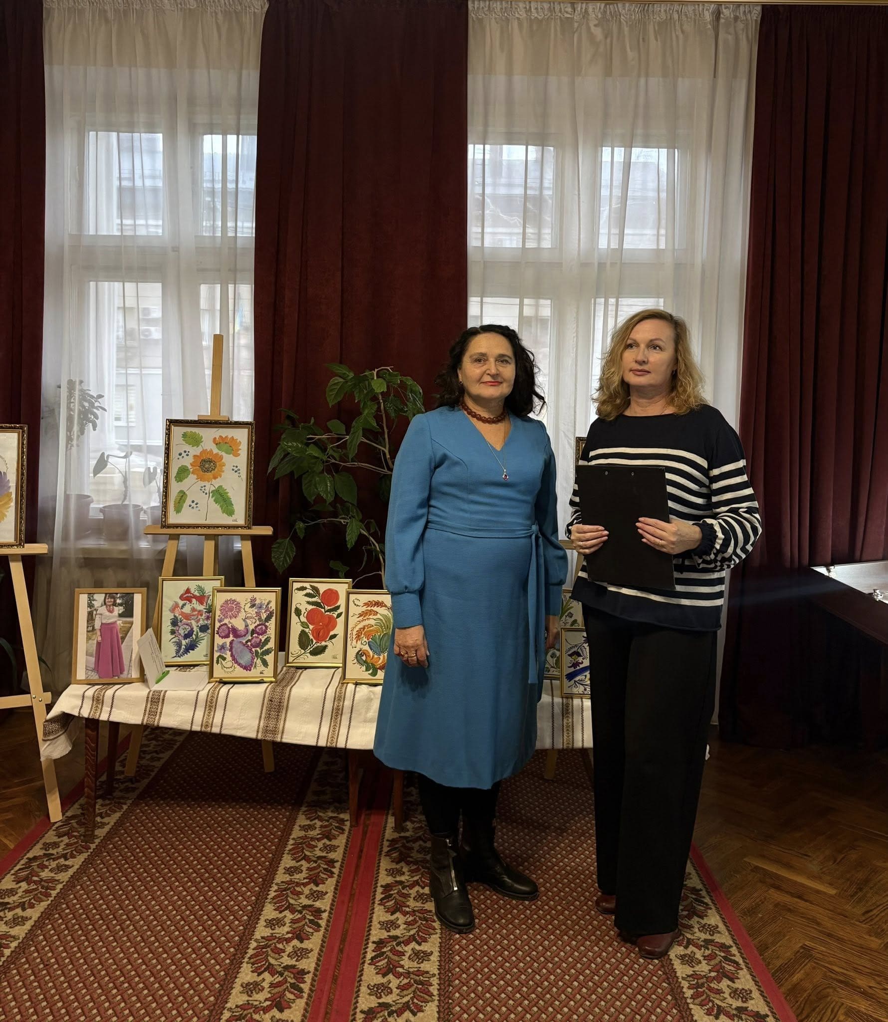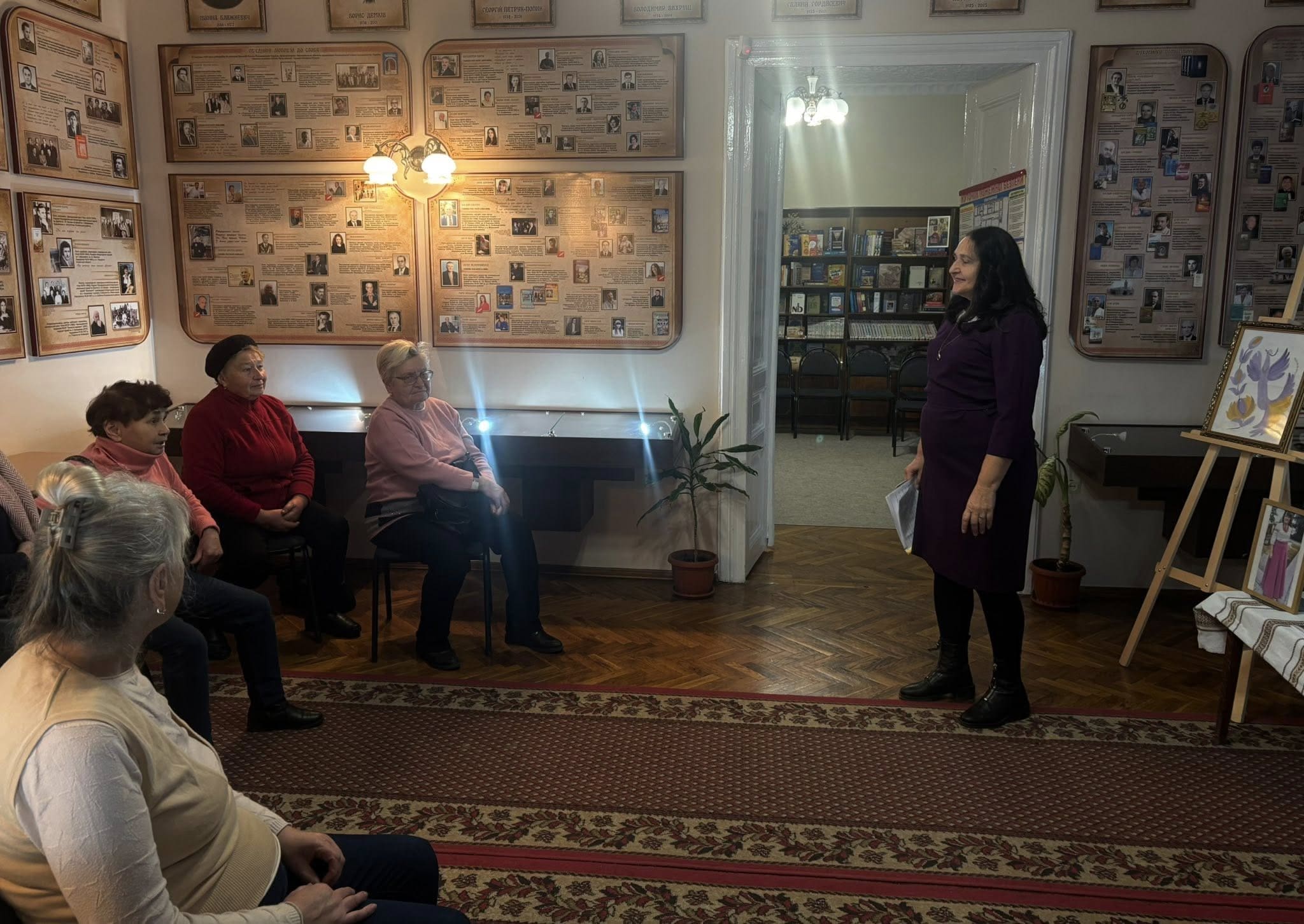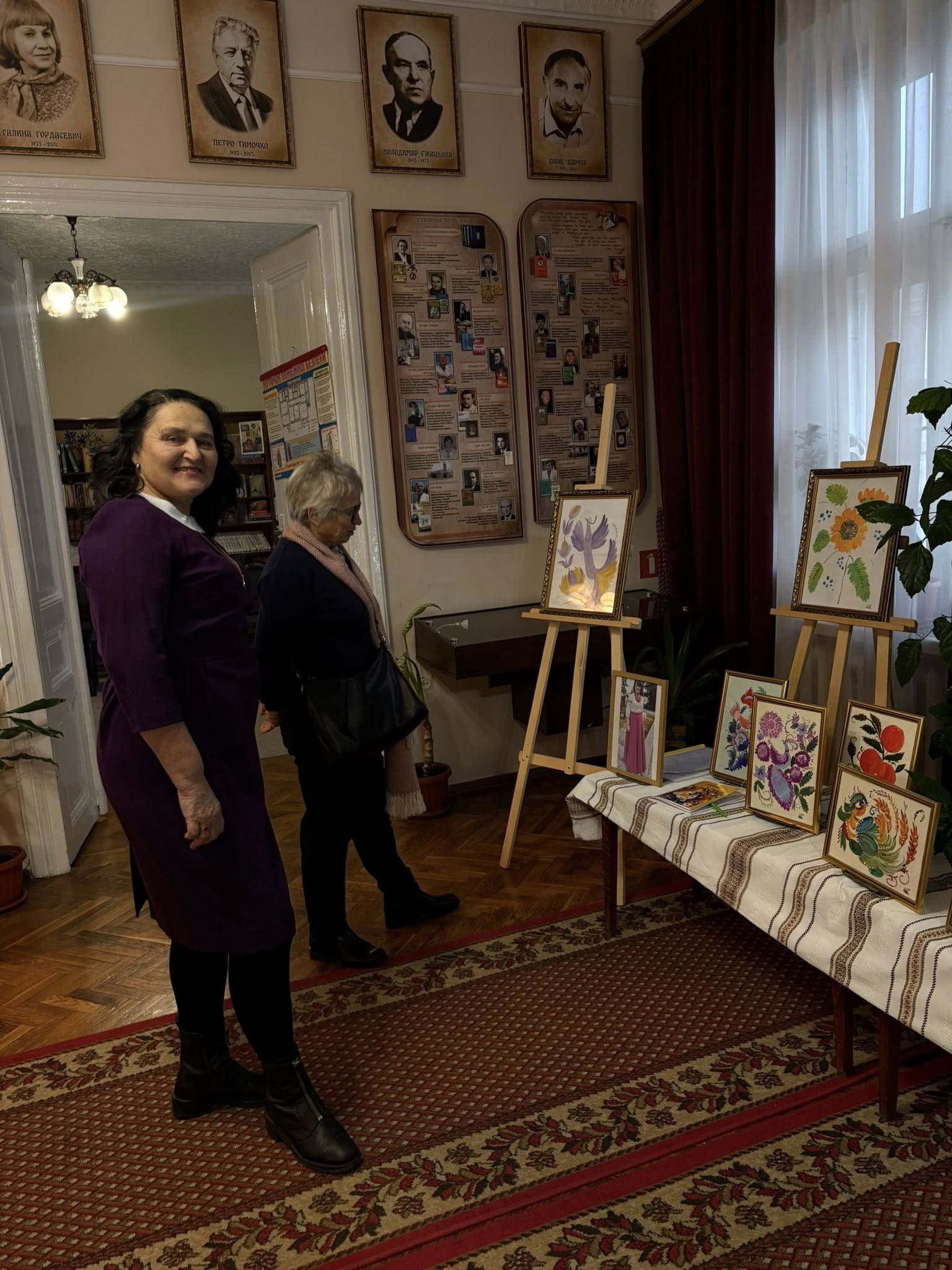 2 грудня бібліотеку-музей відвідали гості, які мали змогу оглянути експозицію та поспілкуватися безпосередньо з авторкою робіт. Під час зустрічі Олена Стручок розповіла про історію створення своїх картин, особливості техніки петриківського розпису та власні творчі підходи.