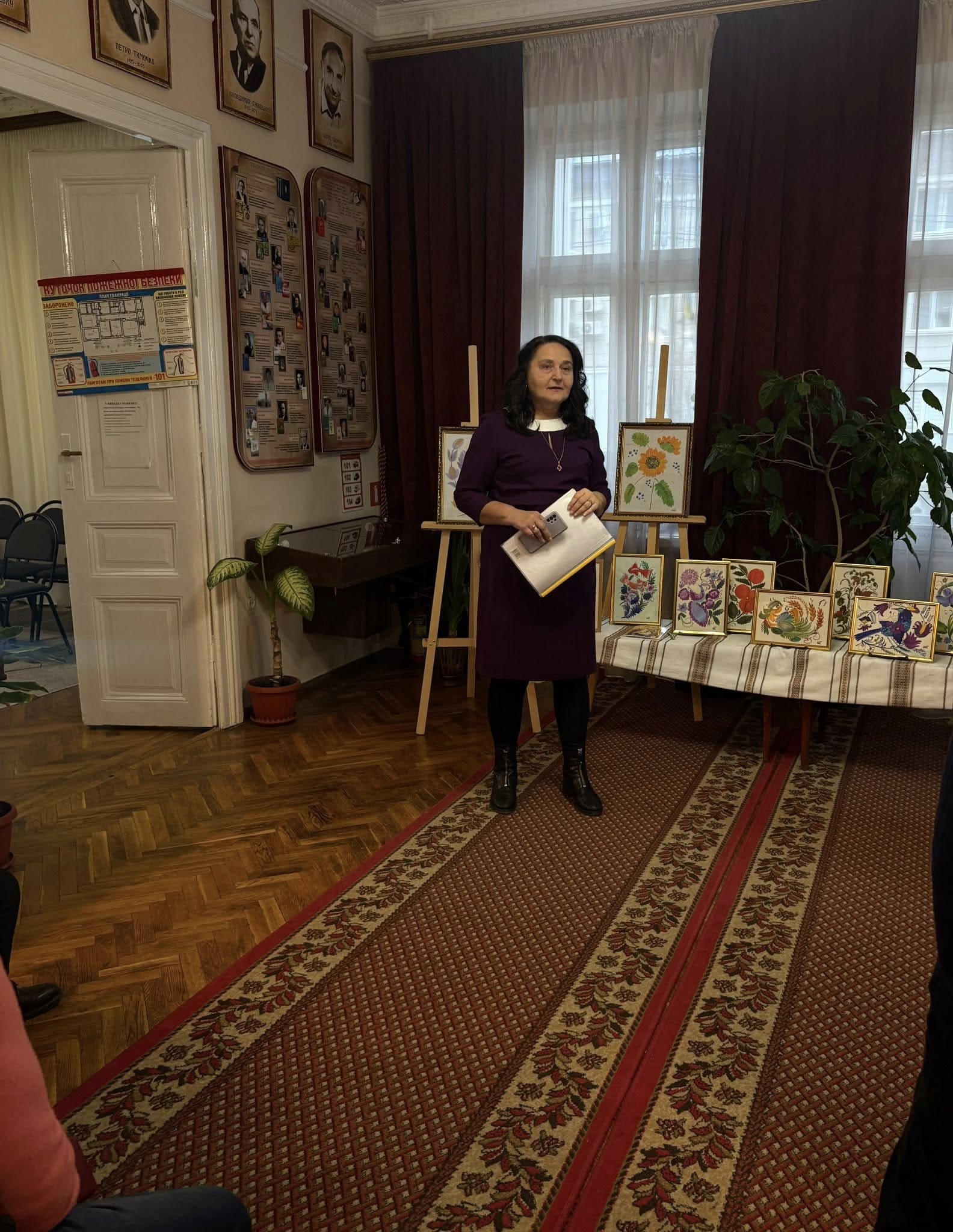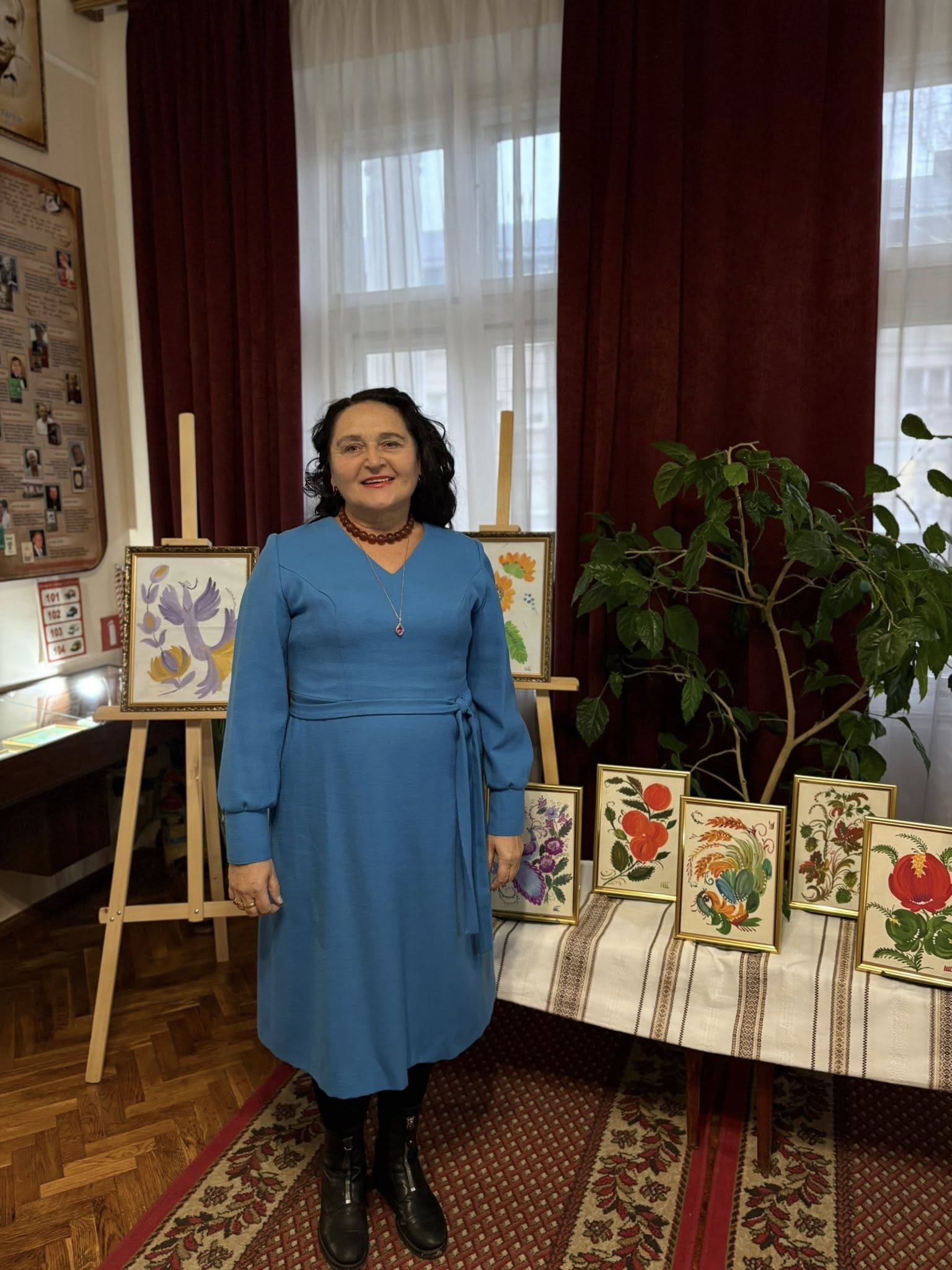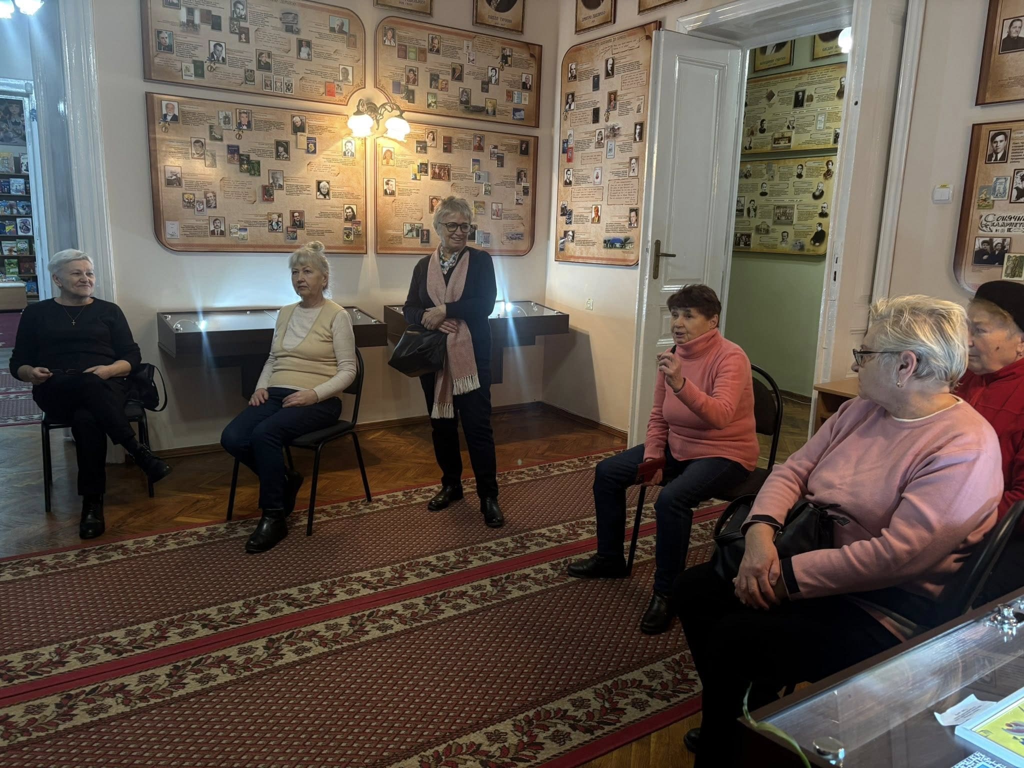 2 грудня бібліотеку-музей відвідали гості, які мали змогу оглянути експозицію та поспілкуватися безпосередньо з авторкою робіт. Під час зустрічі Олена Стручок розповіла про історію створення своїх картин, особливості техніки петриківського розпису та власні творчі підходи.