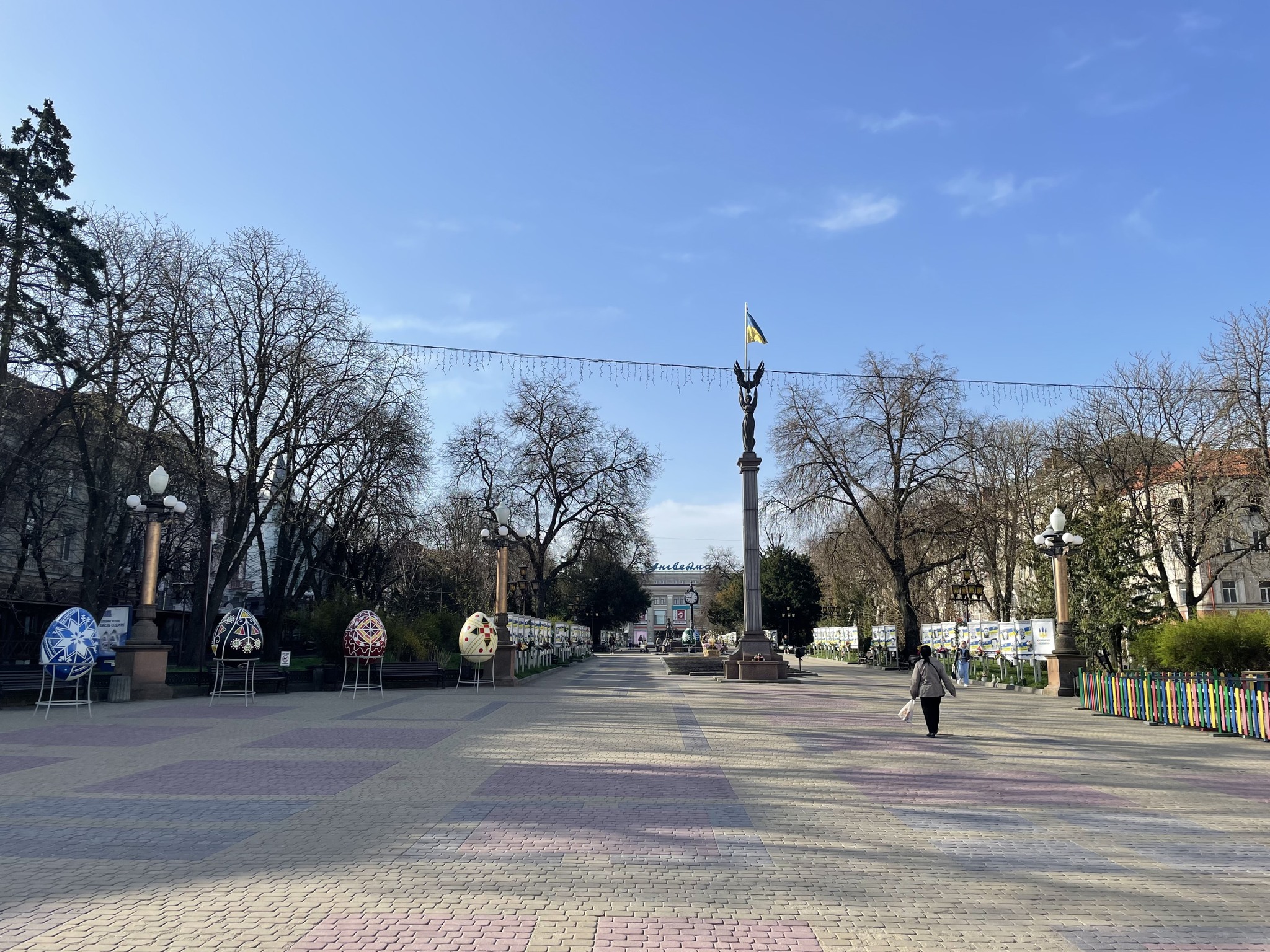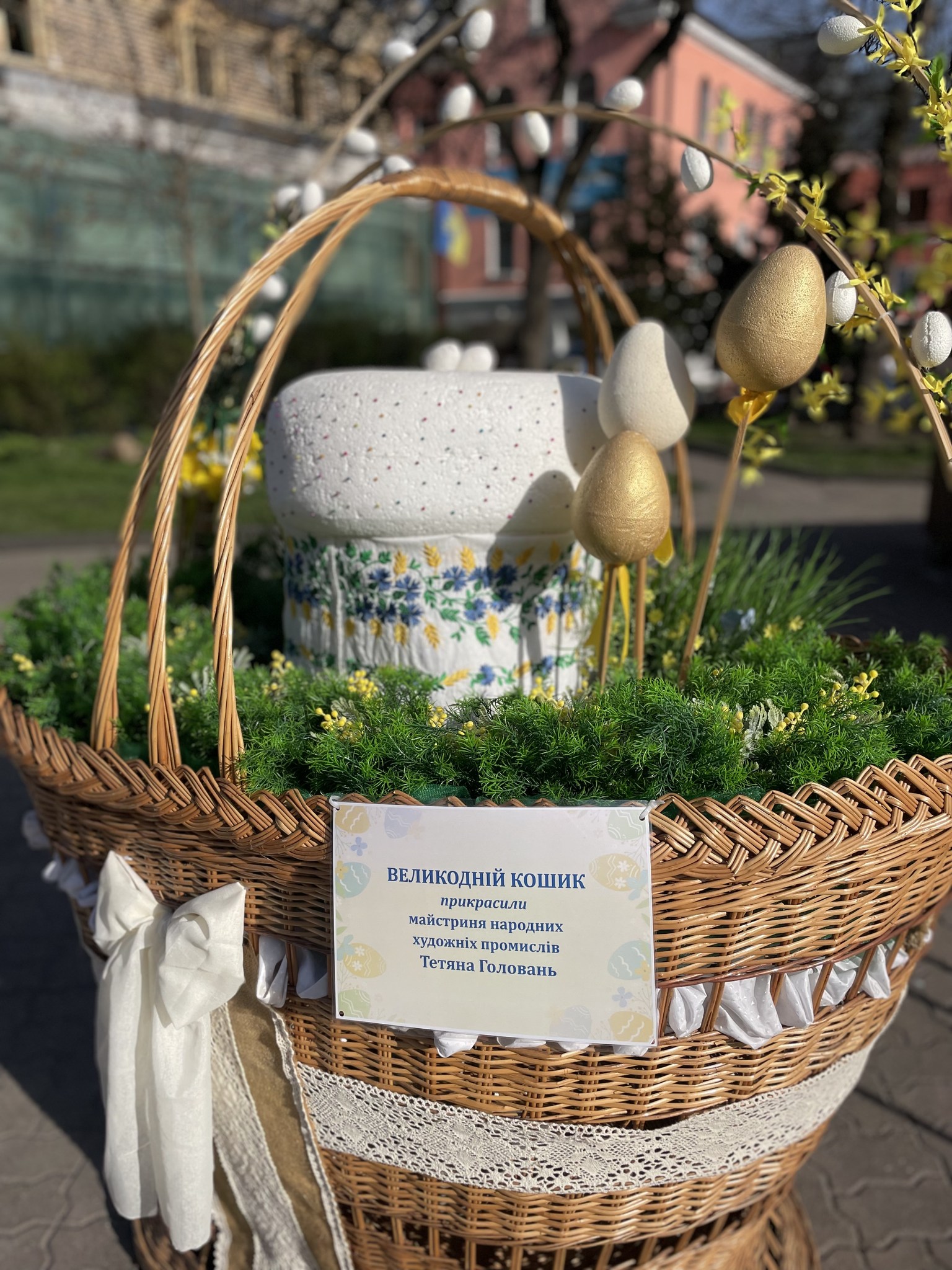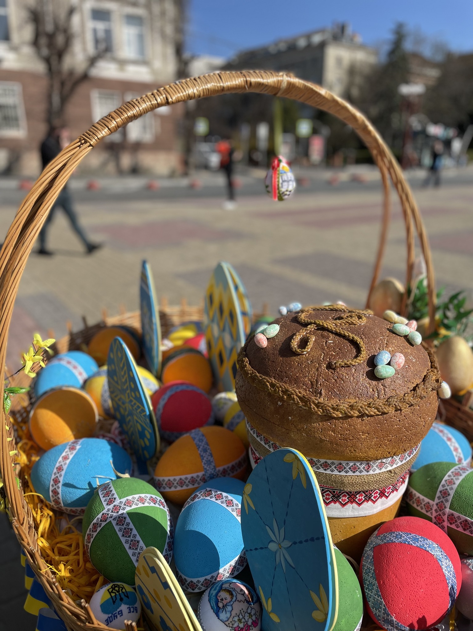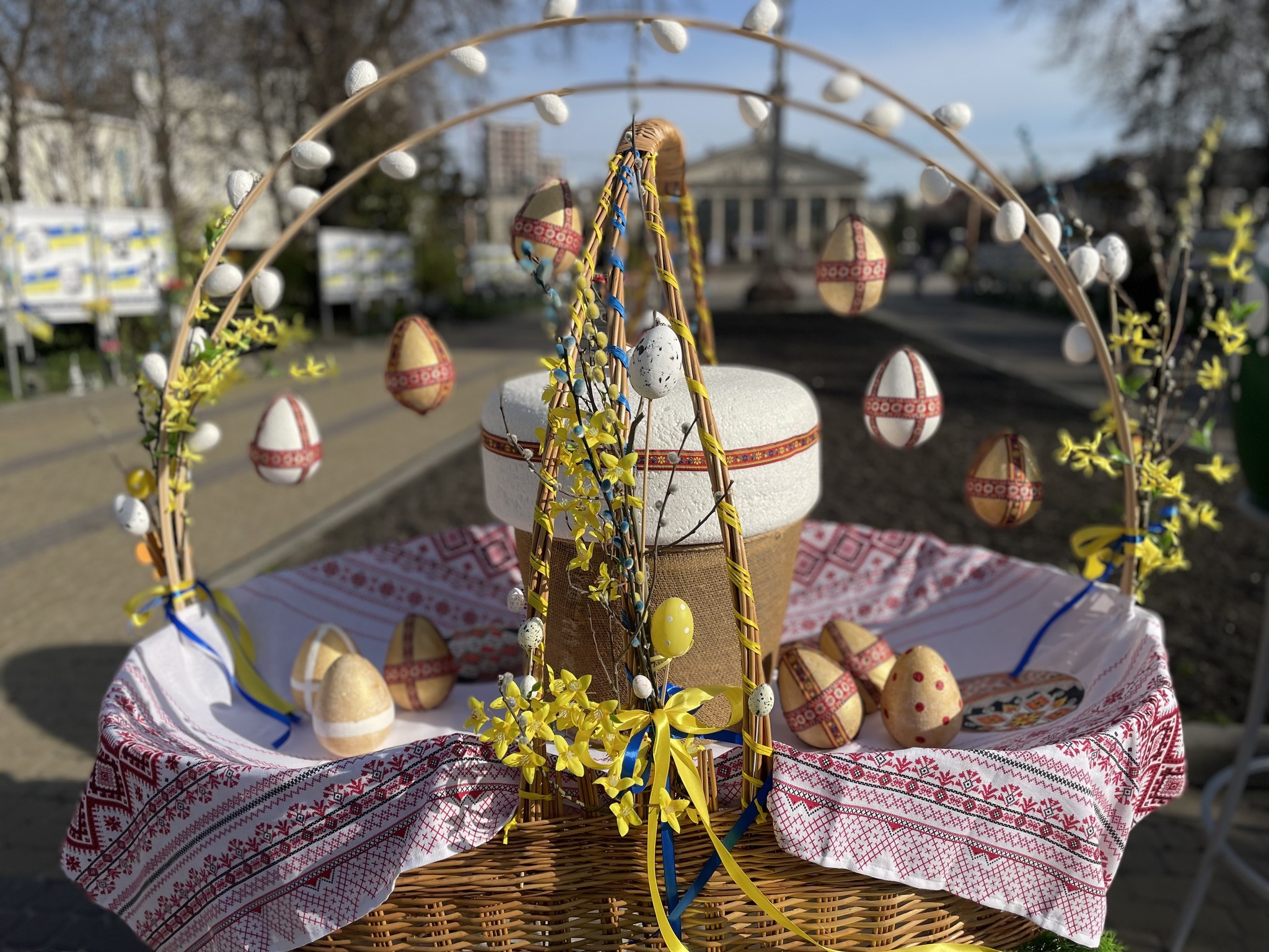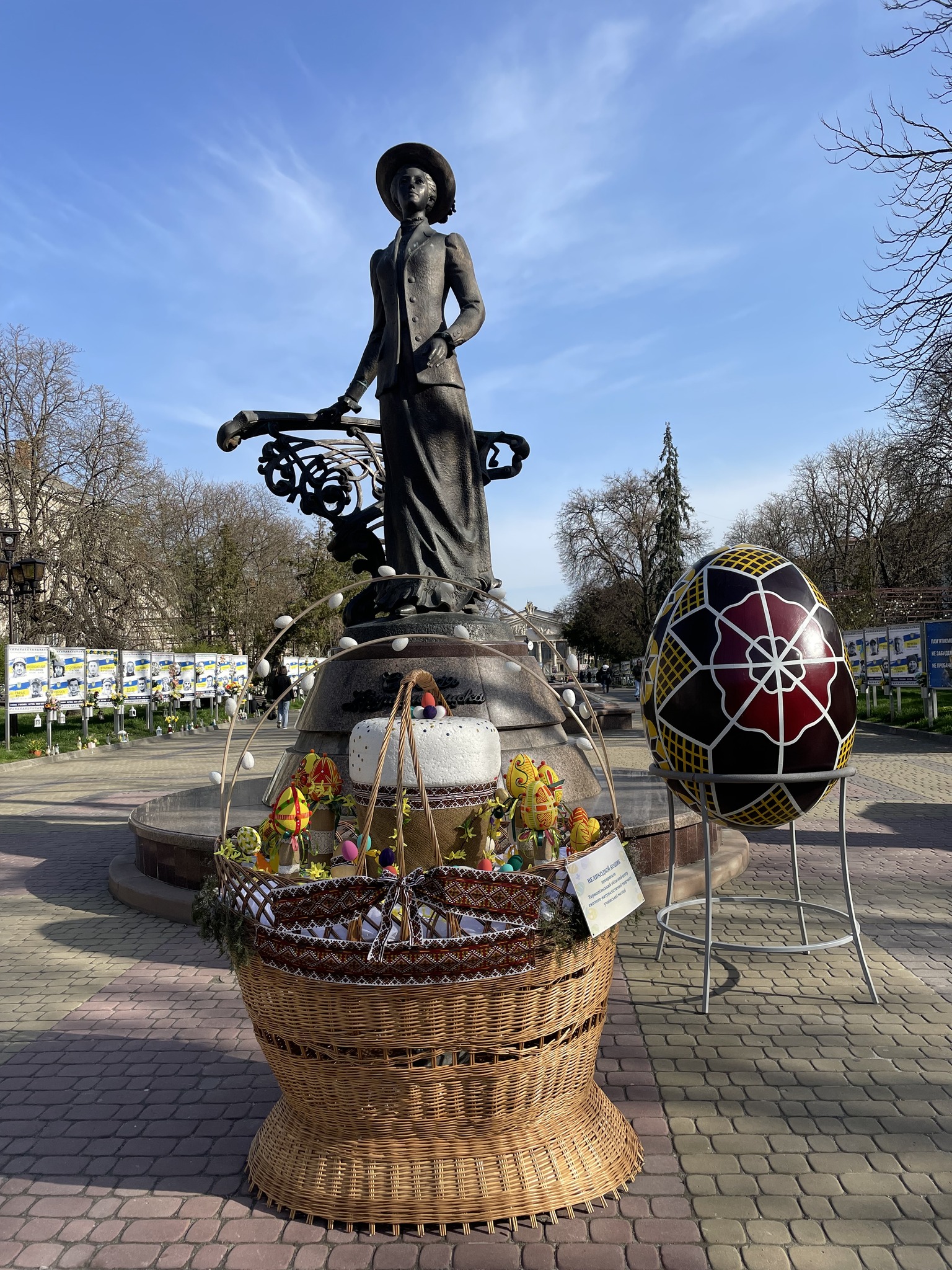 «У самому серці міста з’явилася відкрита „Великодня експозиція просто неба“ – яскраві фотозони з великими кошиками, писанками та іншими символами свята», — повідомили в Тернопільській міській раді.